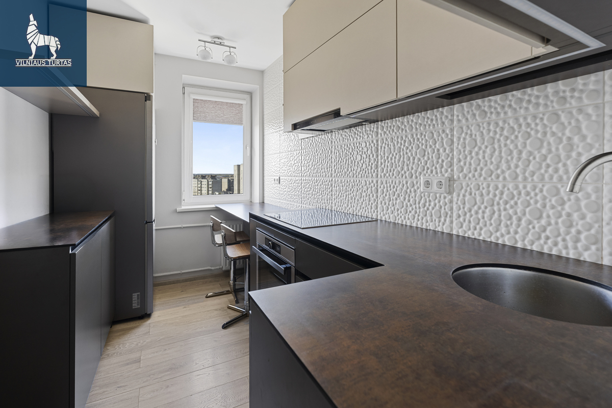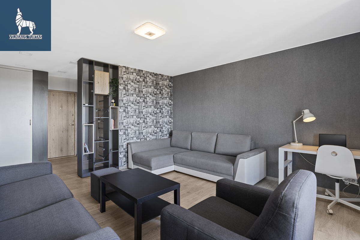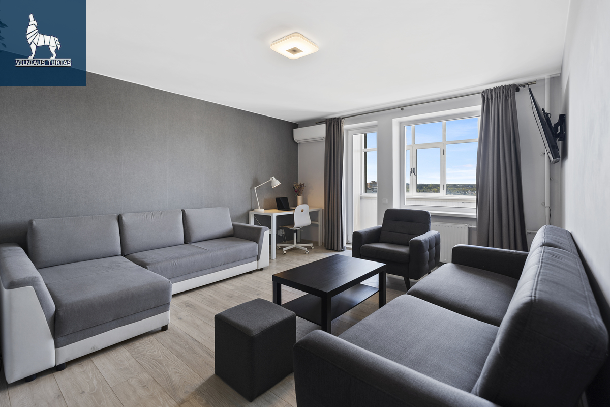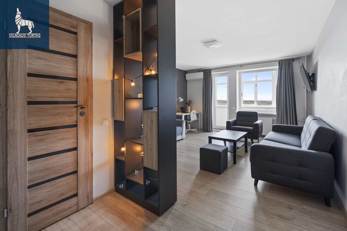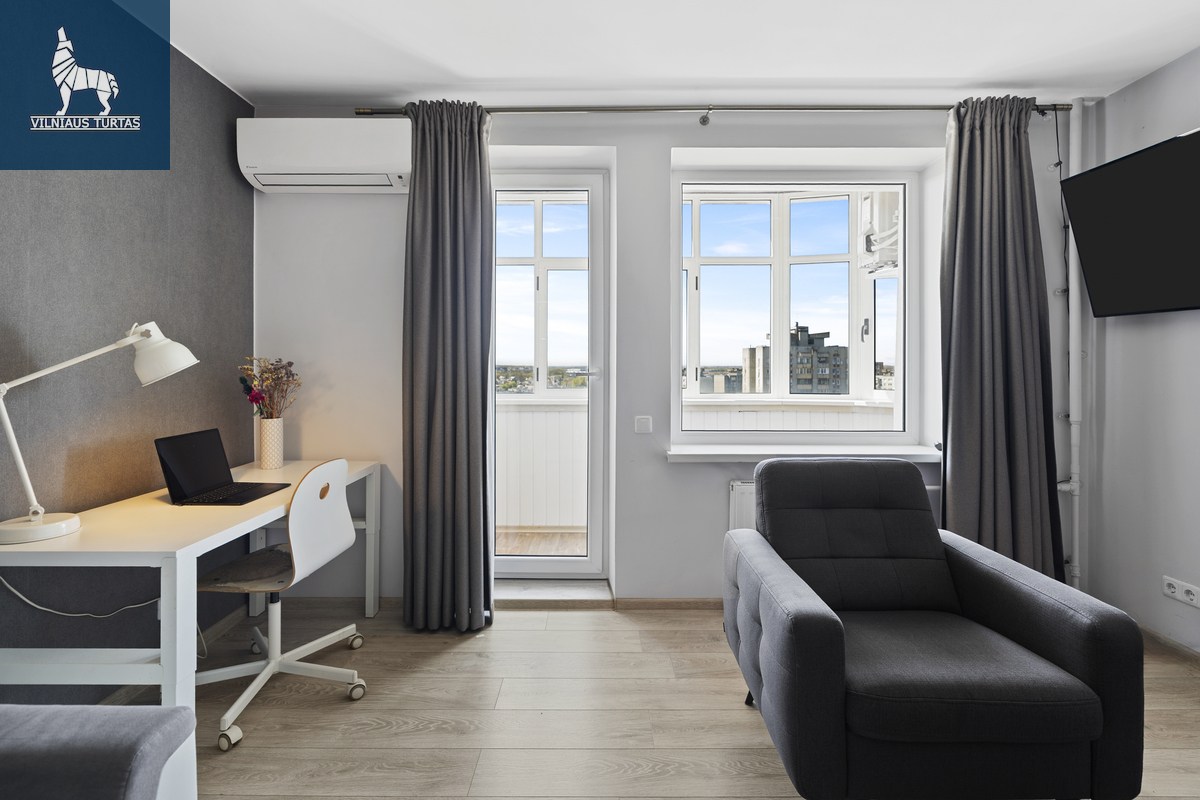 IŠSKIRTINIS, MODERNIAI ĮRENGTAS ERDVUS 1 KAMBARIO BUTAS 12 AUKŠTE SU PANORAMINIU VAIZDU IR SAULĖLYDŽIAIS