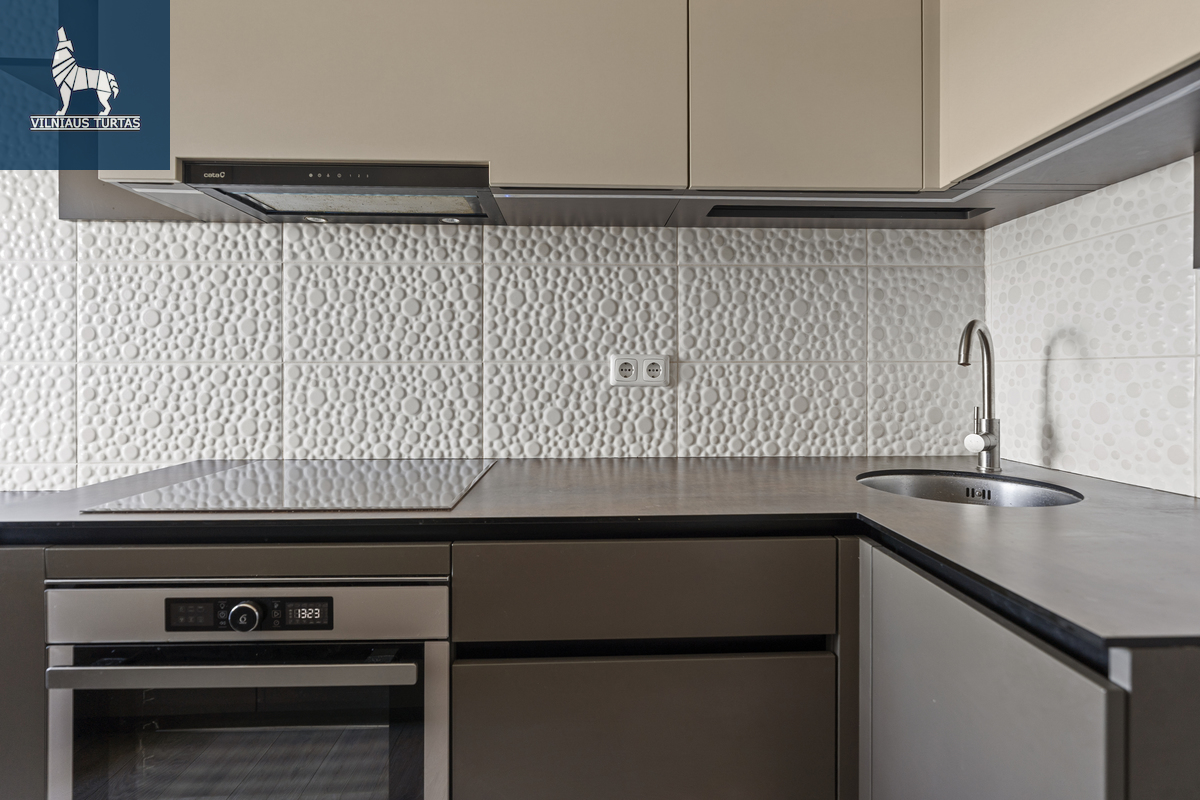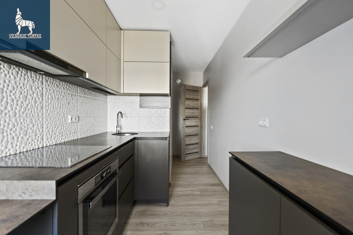 – parduodamas su visais baldais ir buitine technika: indukcine kaitlente, orkaite, mikrobangų krosnele, šaldytuvu, skalbimo mašina;