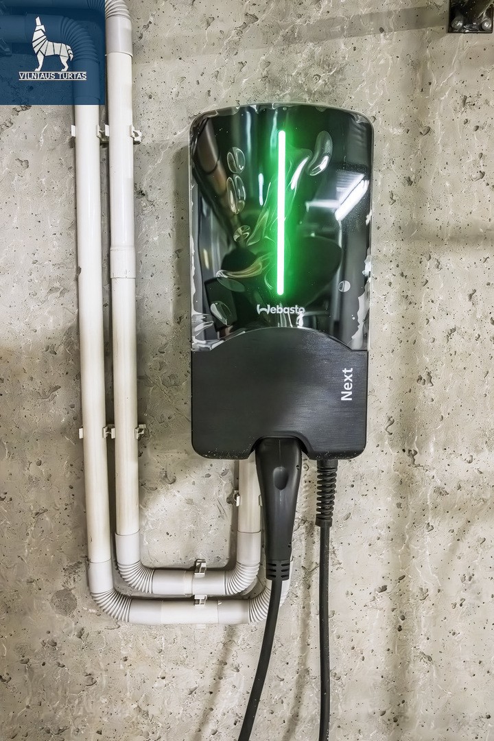 Labai plati parkavimo vieta su elektros krovimo stotele