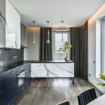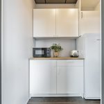 Atviros virtuvės su papildoma „mažąja“ virtuvėle (už durų, su šaldikliu ir kt.)