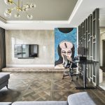 Erdvios svetainės su darbo zona ir išėjimu į terasą