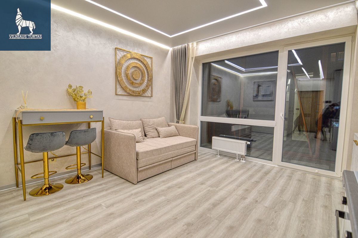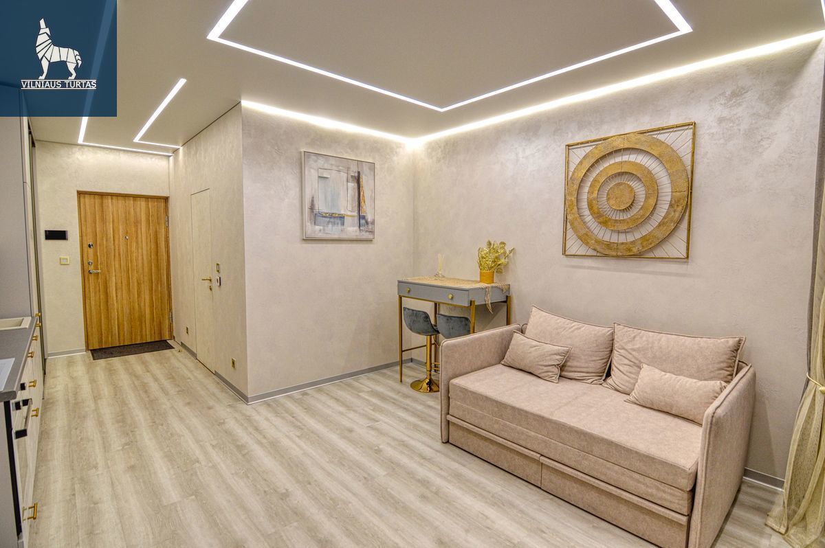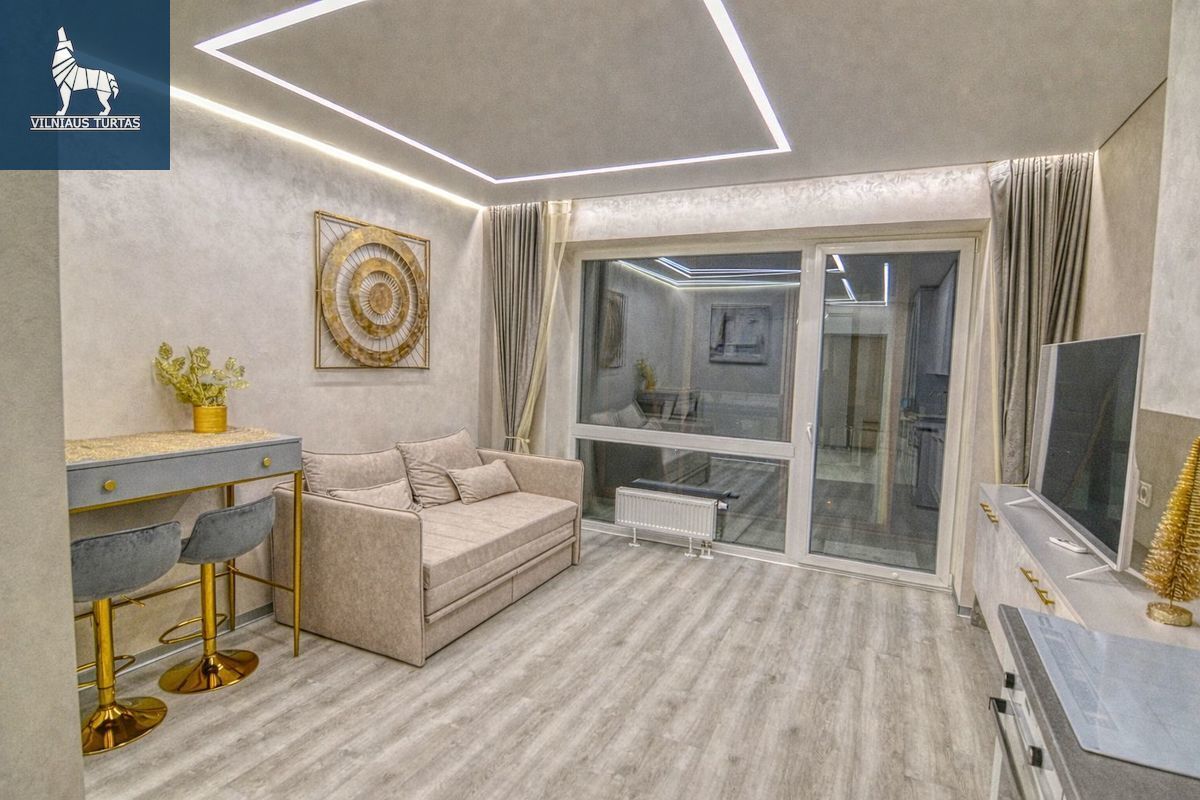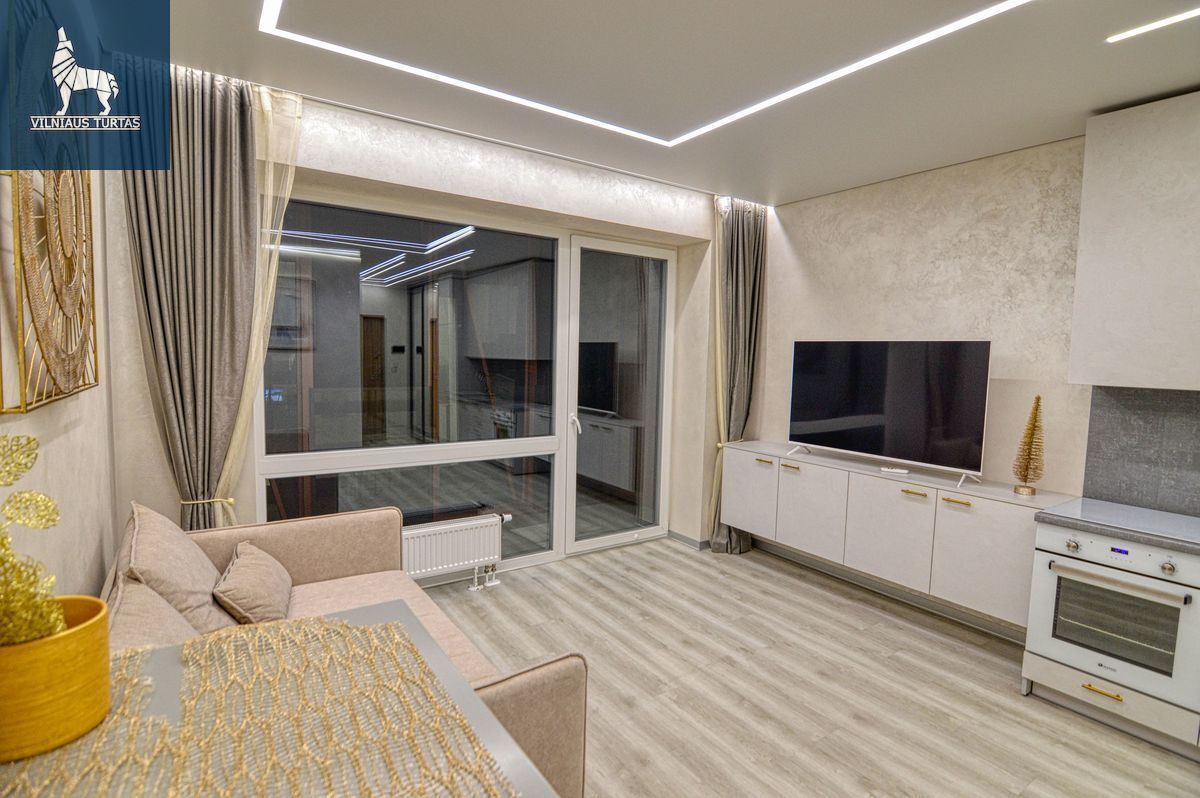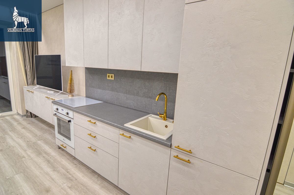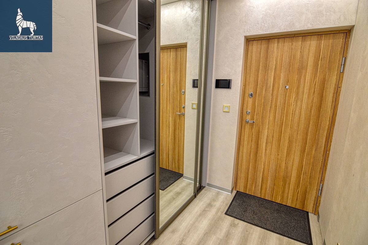 Nuomojamas modernus, šviesus ir funkcionaliai suplanuotas 1 kambario butas viename iš kokybiškiausių projektų Viršuliškėse – „Skylum“.