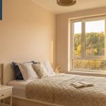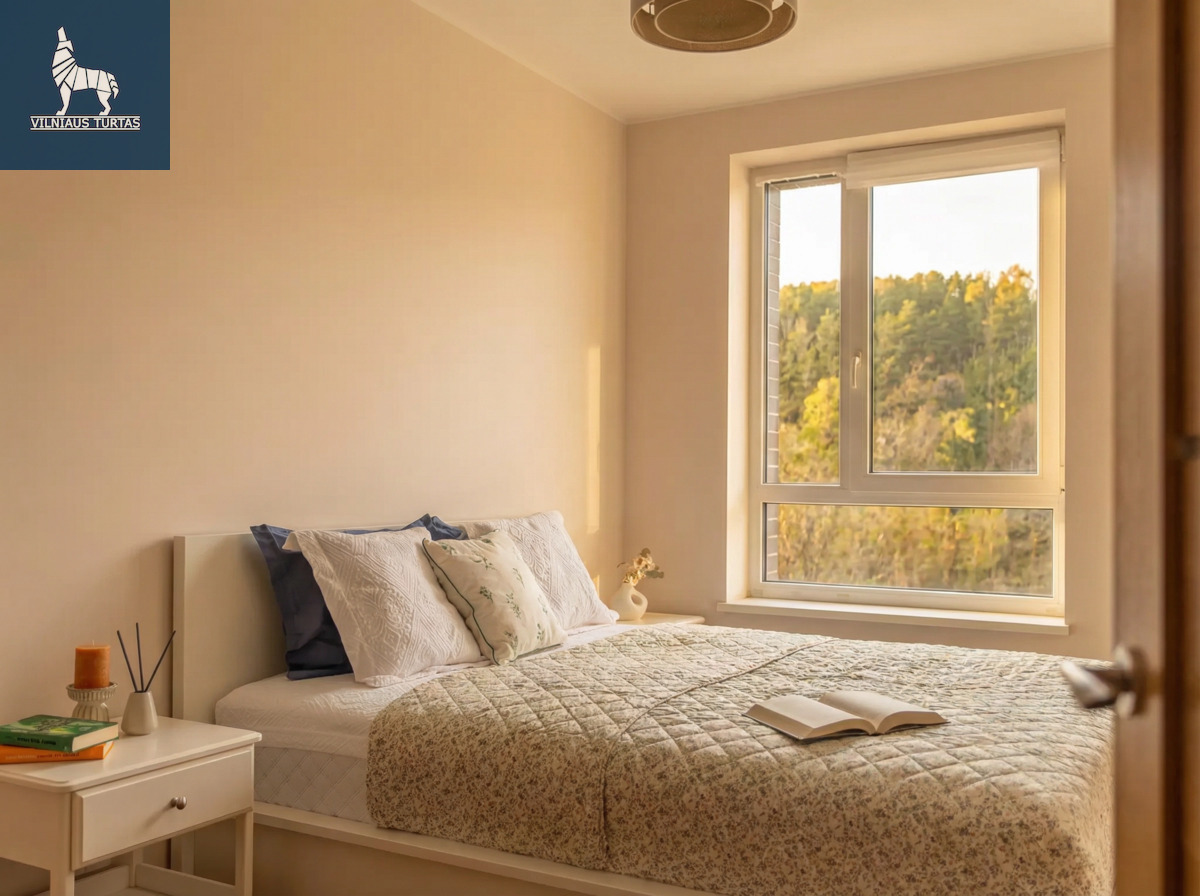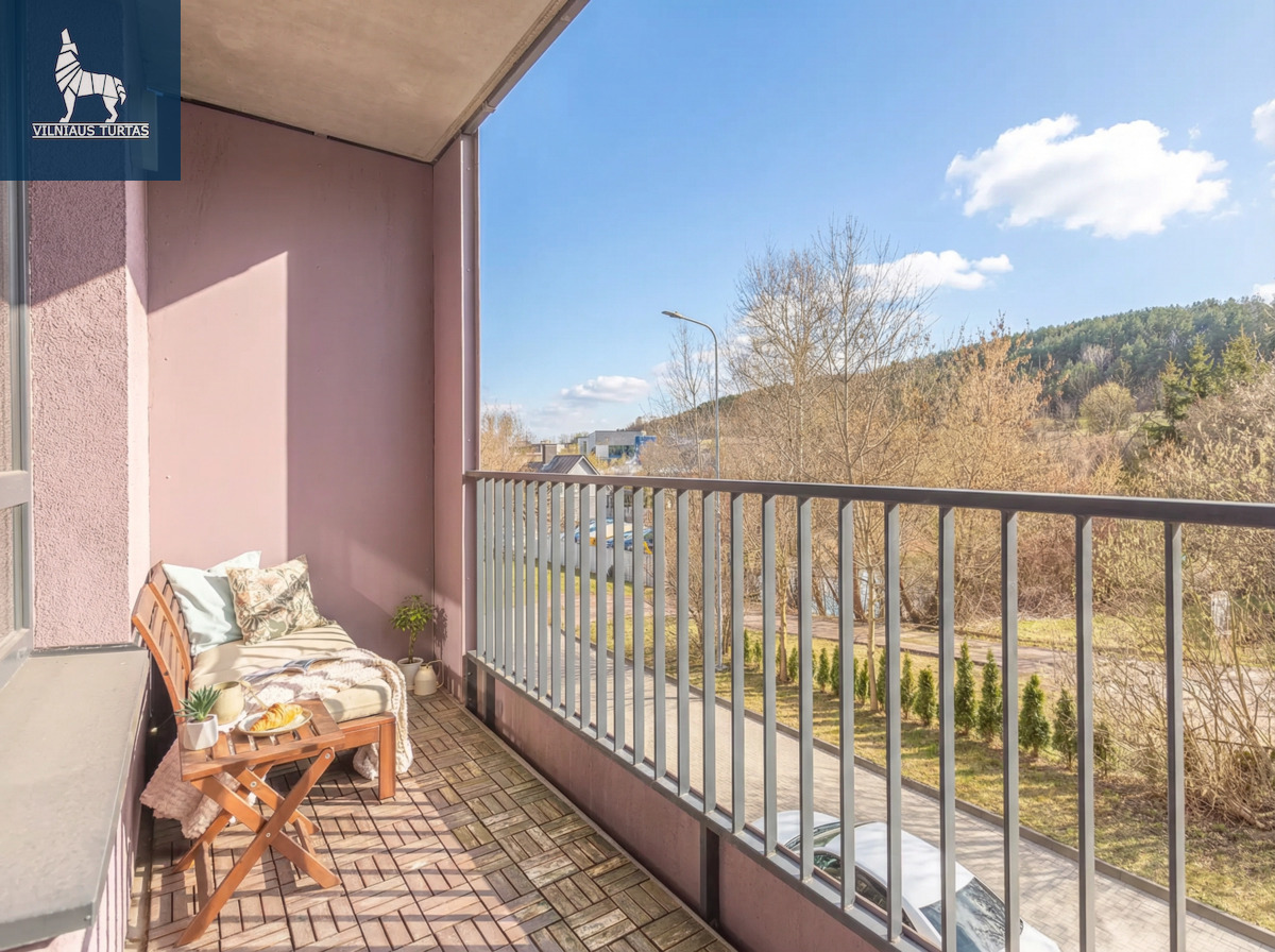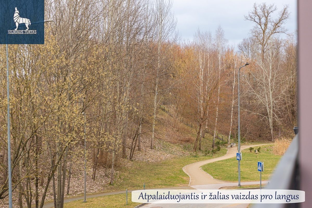 Langai orientuoti į vakarus, todėl bute gausu natūralios šviesos, o pro langus atsiveria žalias, atpalaiduojantis vaizdas – jokio žiūrėjimo į kaimynų langus.