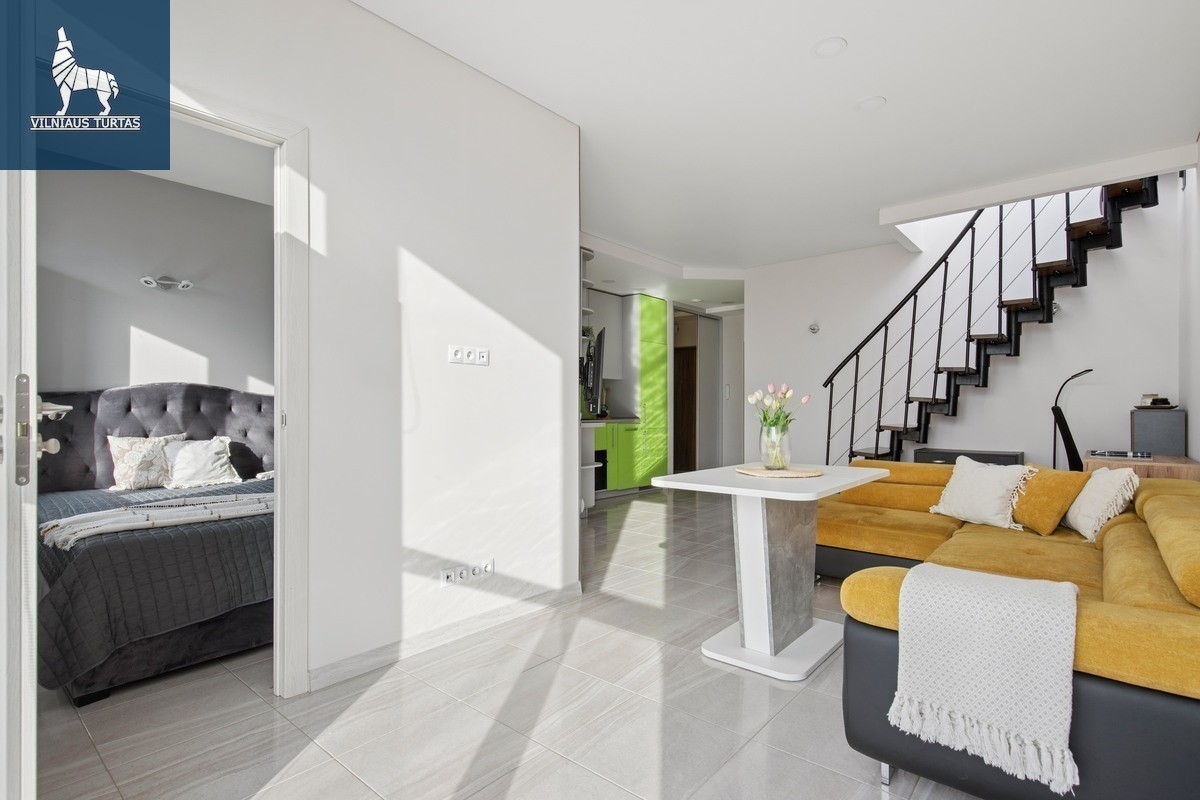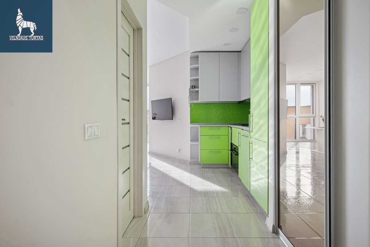 Parduodamas šiuolaikiškai įrengtas 2 kambarių butas 2020 m. statybos mažaaukščiame name – puikus pasirinkimas ieškantiems šviesios, patogios ir ramesnės gyvenamosios vietos. Aplink mažai daugiabučių, tad čia daugiau erdvės, oro ir gamtos. Vos išėjus iš namų – pasivaikščiojimų takai, žaliosios zonos, o Rimi prekybos centras – tiesiog už kampo, tad nors ir jausitės gyvendami atokiau nuo miesto, jo privalumus turėsite čia pat.