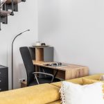 Buto interjere vyrauja šviesos spalvos. Natūrali dienos šviesa per didelius langus užlieja svetainės erdvę, kurioje malonu tiek ilsėtis, tiek dirbti (tam yra darbo kampelis po laiptais). Interjeras jaukus, minimalizmo megėjams, todėl nauji gyventojai galės lengvai pritaikyti erdvę pagal savo gyvenimo ritmą.