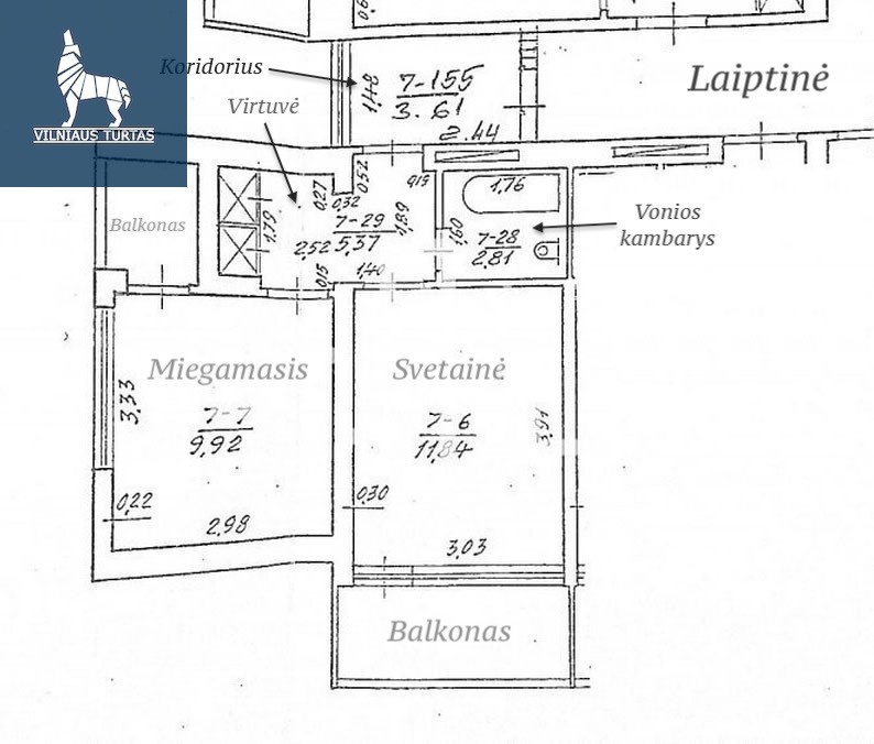 Bendras buto plotas – 39.03 kv.m (kambarys 9.92 kv.m, kambarys 11.84 kv.m, virtuvė 5.37 kv.m, vonios kambarys 2.81 kv.m, koridorius 3.61 kv.m, plius bendro naudojimo patalpos);