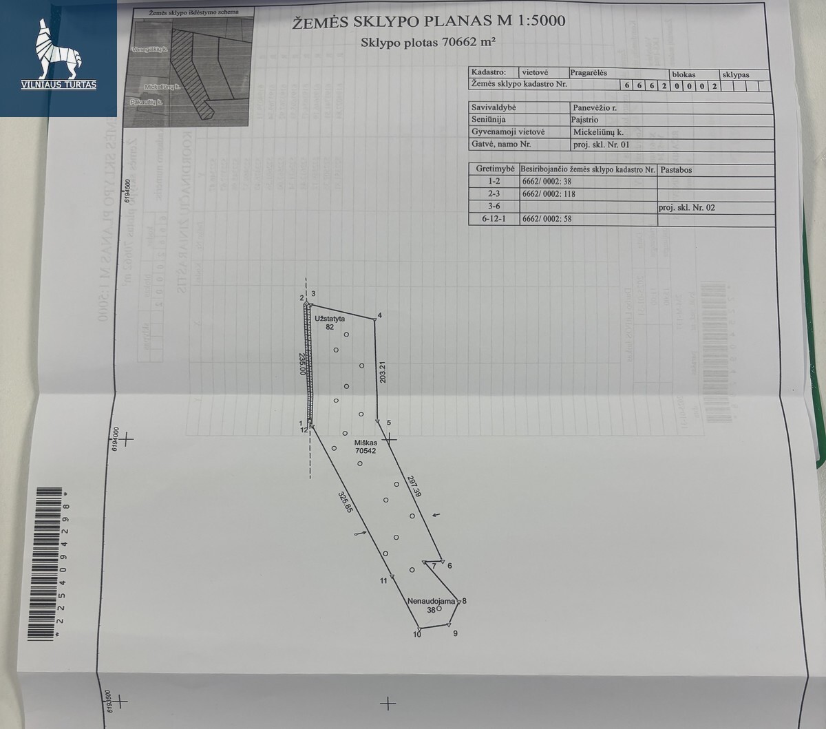 Panevėžio raj. Paįstrio sen. Mickeliūnų kaime parduodamas miškų paskirties sklypas ;