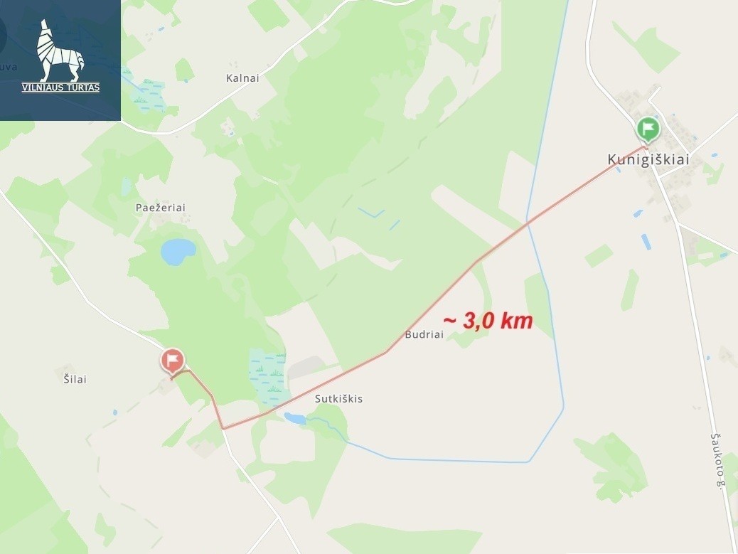 – Kunigiškiai ~ 3,0 km,