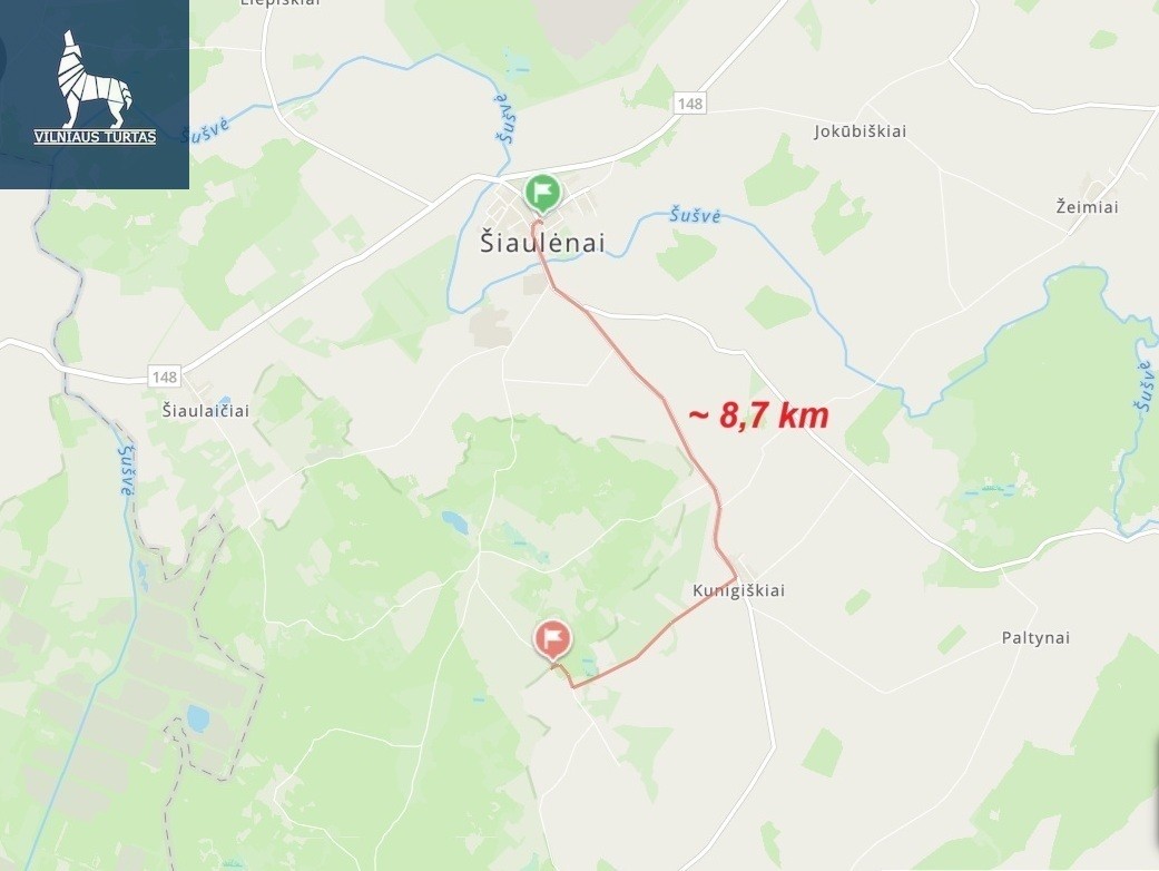 – Šiaulėnai ~ 8,7 km,