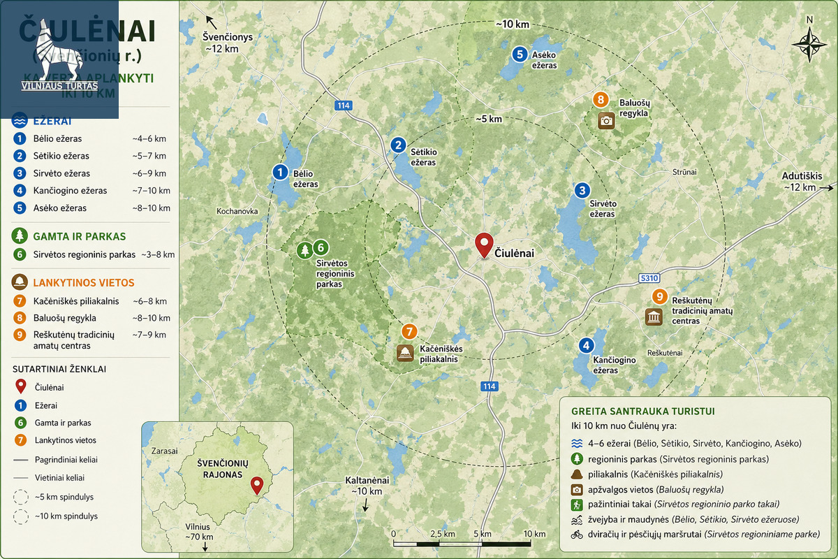Iki 10 km nuo Čiulėnų yra:
