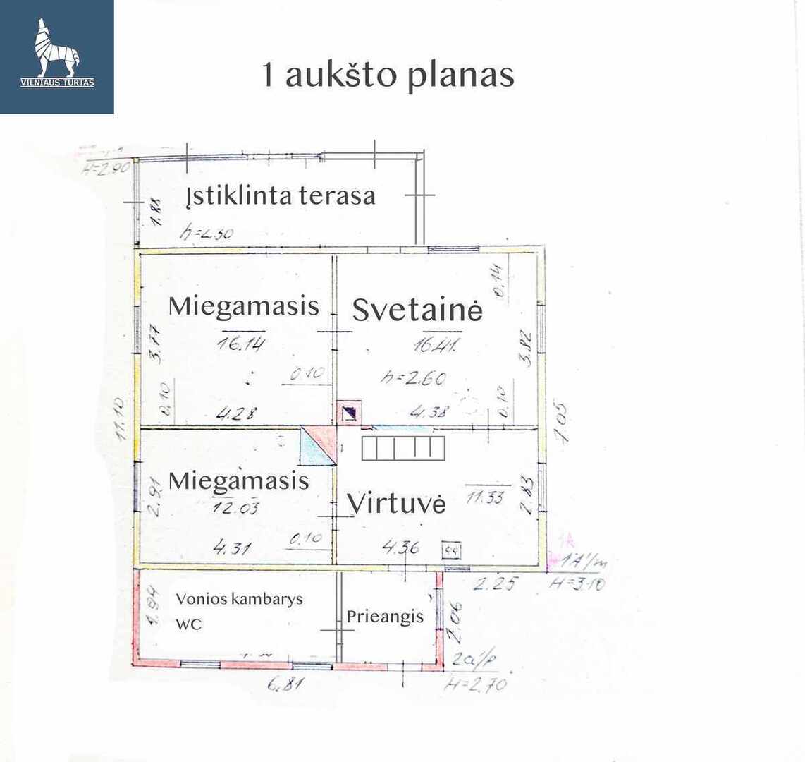 – Bendras namo plotas: 1 aukštas – 75,47 kv.m, 2 aukštas – 35 kv.m.