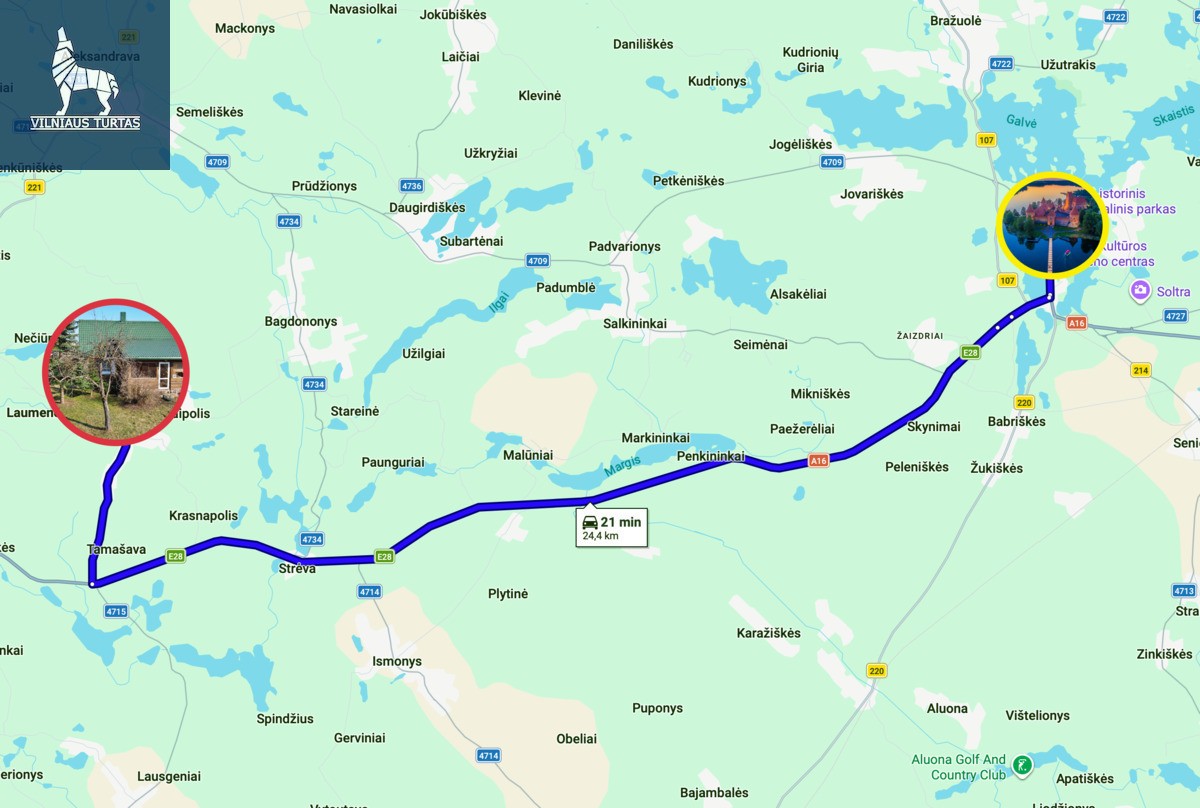 – Iki Trakų: 24 km ;