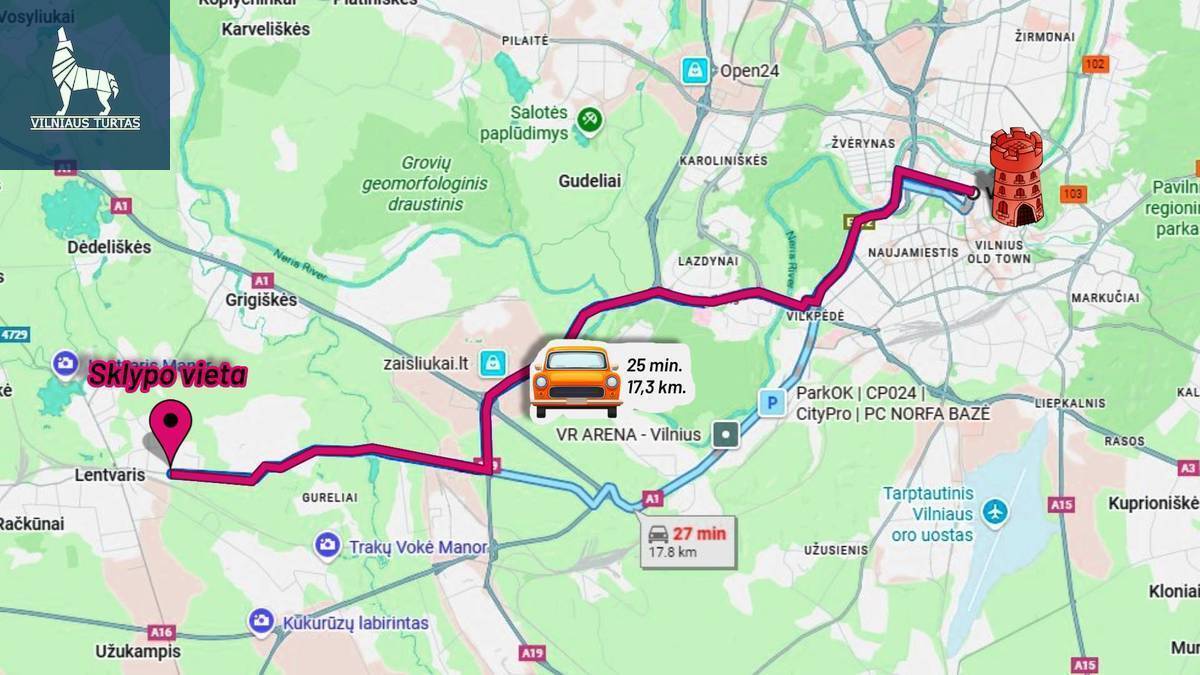 Sklypas yra Vilniaus g., Lentvaryje, vos 17 km nuo Vilniaus centro (apie 20–25 min. automobiliu).