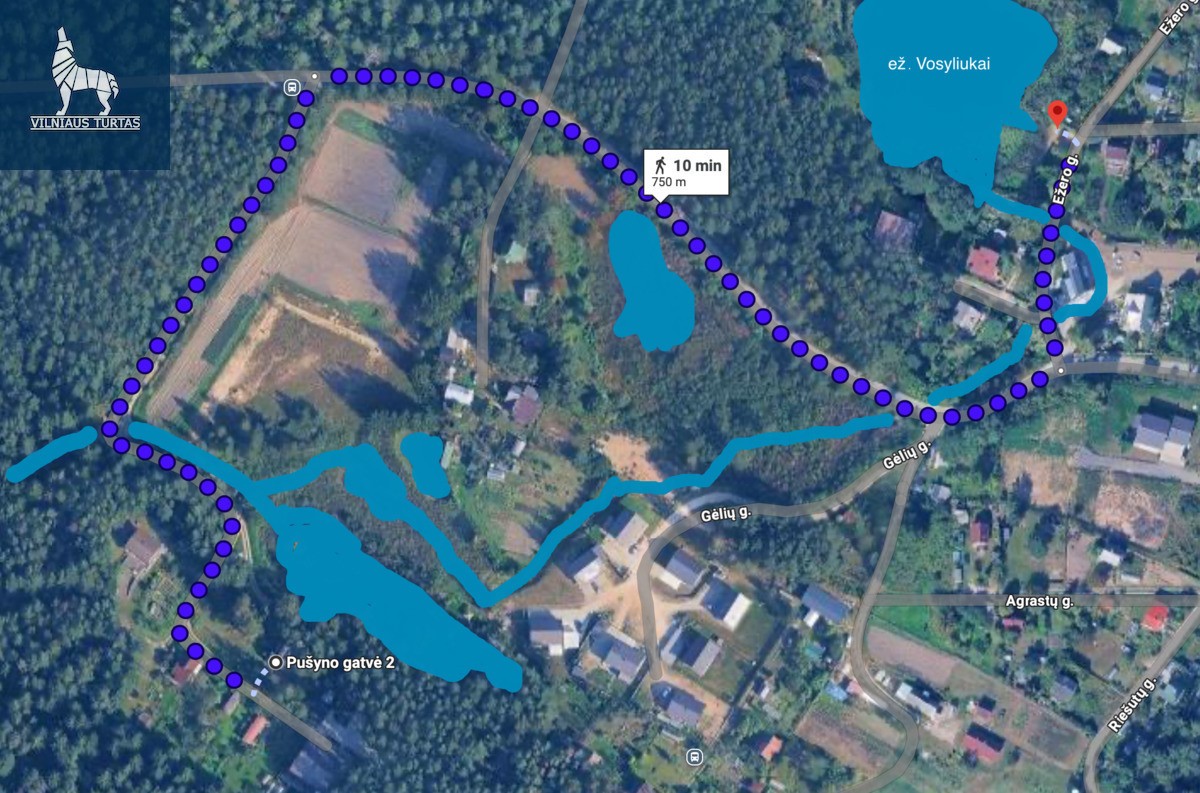 * 750 m iki Vosyliukų ežerėlio, kuriame galima maudytis;
