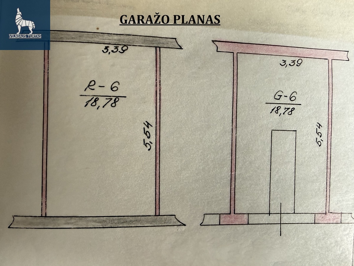 Bendras garažo plotas: 37.56 kv.m., iš jų garažo duobė 18,78 kv.m.(puiki vieta daiktų laikymui).