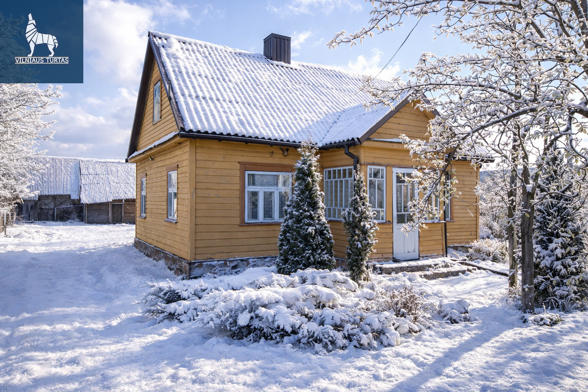 PARDUODAMA JAUKI SODYBA ŽIEMOS RAMYBĖJE – SU ERDVIU SKLYPU IR PUIKIA KAIMYNYSTE