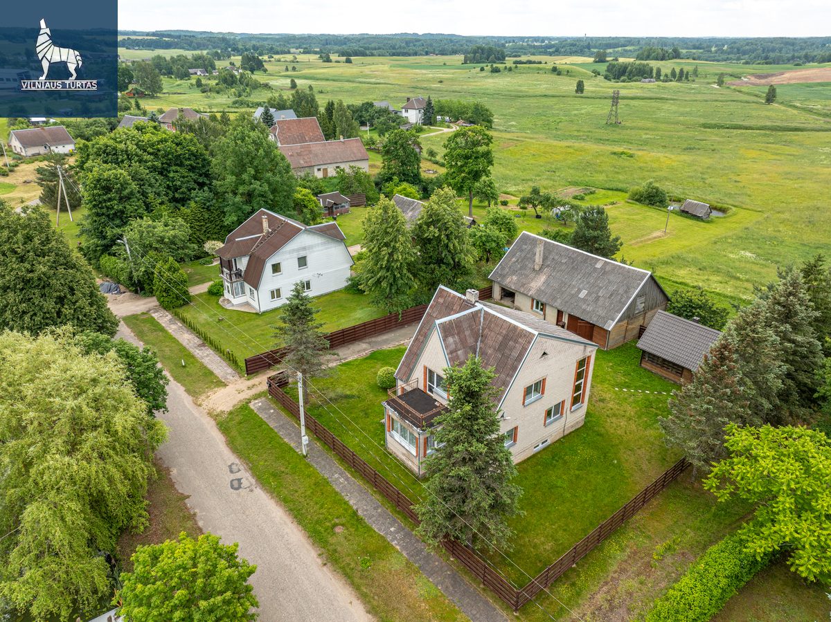 Šalia Utenos, Vaikutėnuose, prie tvenkinio, parduodamas 206,69 kv.m. mūrinis namas. Yra pirtis, garažas, ūkinis pastatas. Aptverta teritorija, pulteliu valdomi vartai ir garažo durys.