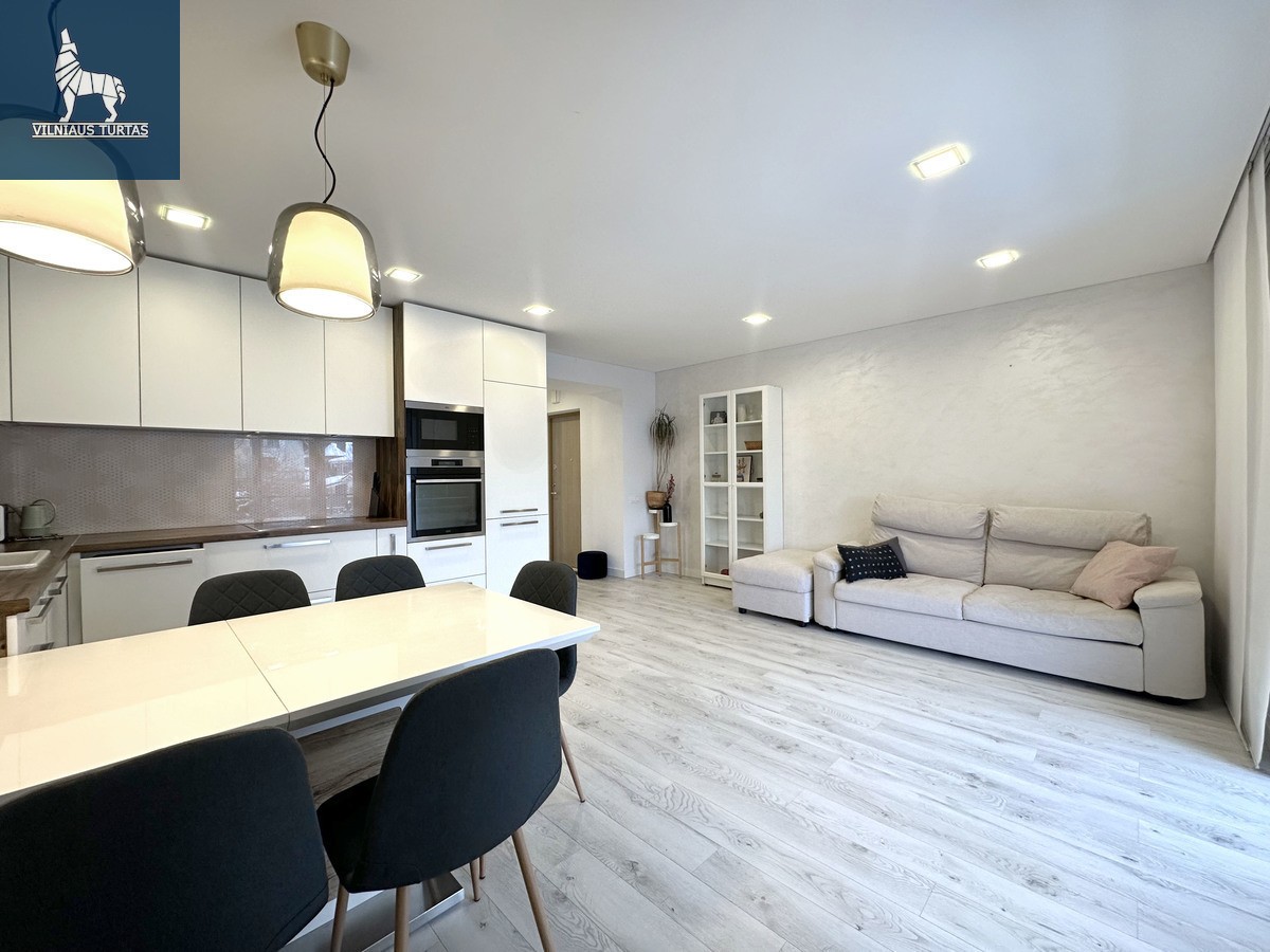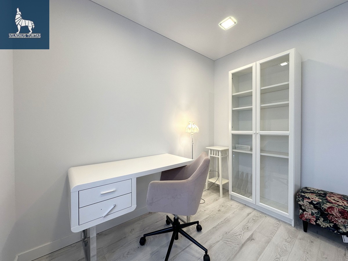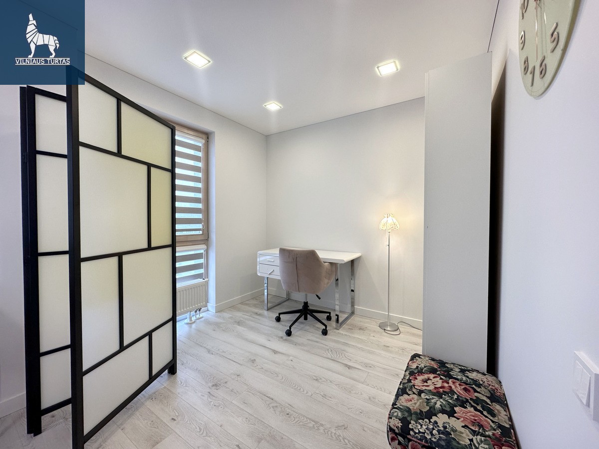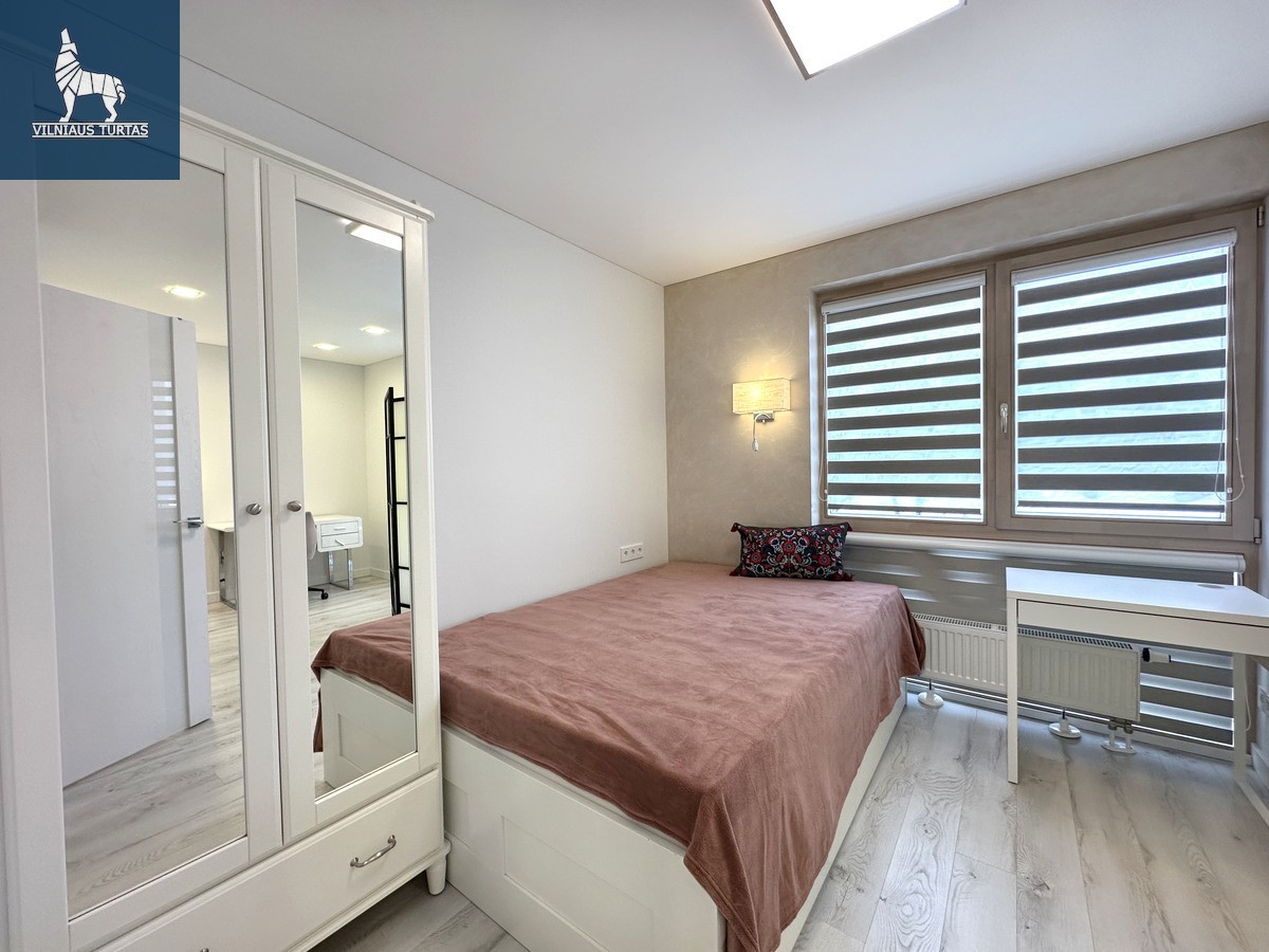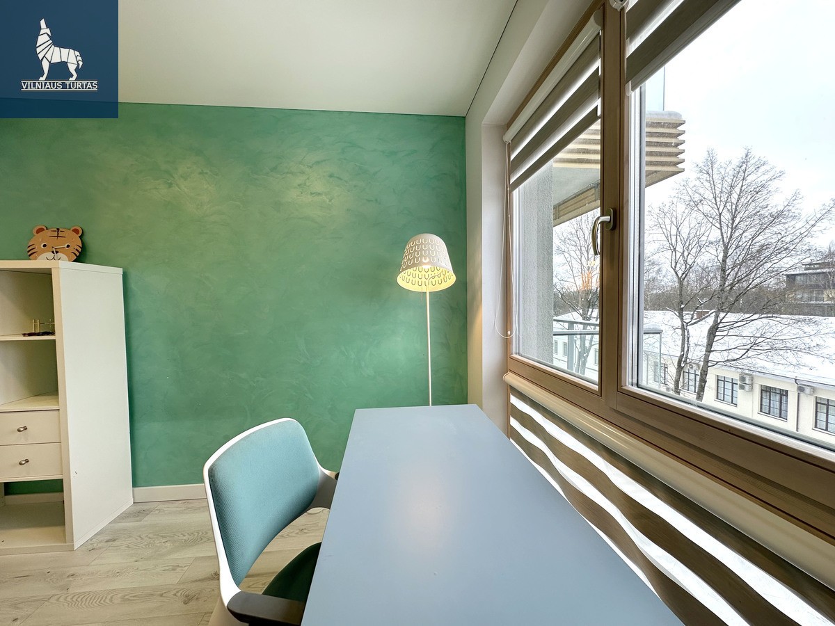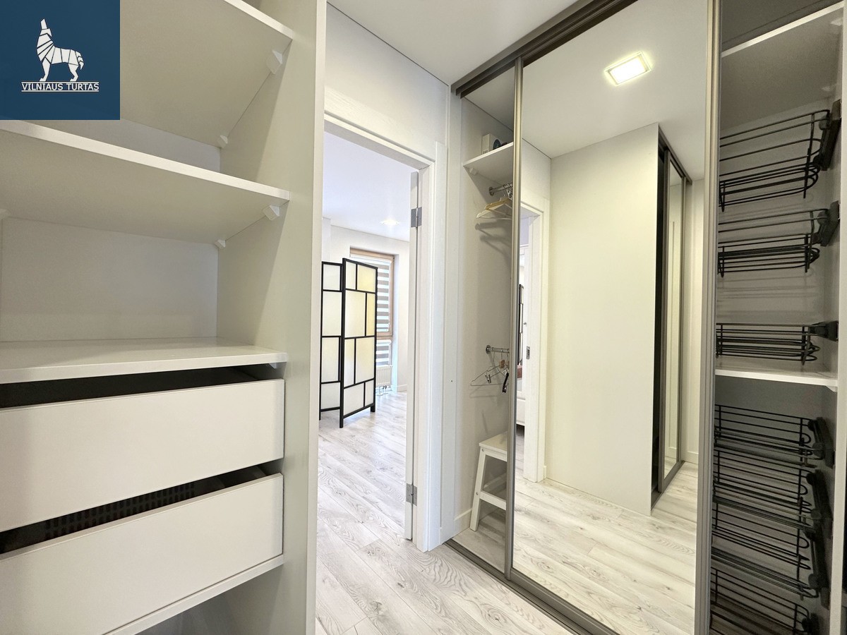 5 aukštas iš 7, bendras plota 69 kv.m., statyba 2021 m., mūrinis namas, didelis balkonas-lodžija, vonia ir tualetas kartu, du izoliuoti kambariai, svetainė kartu su virtuvė, bute didelės ir gerai apgalvotos spintos, daug apšvietimo, geros lovos su patogiais čiužiniais.