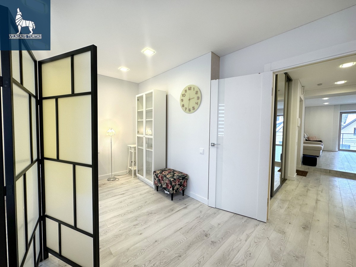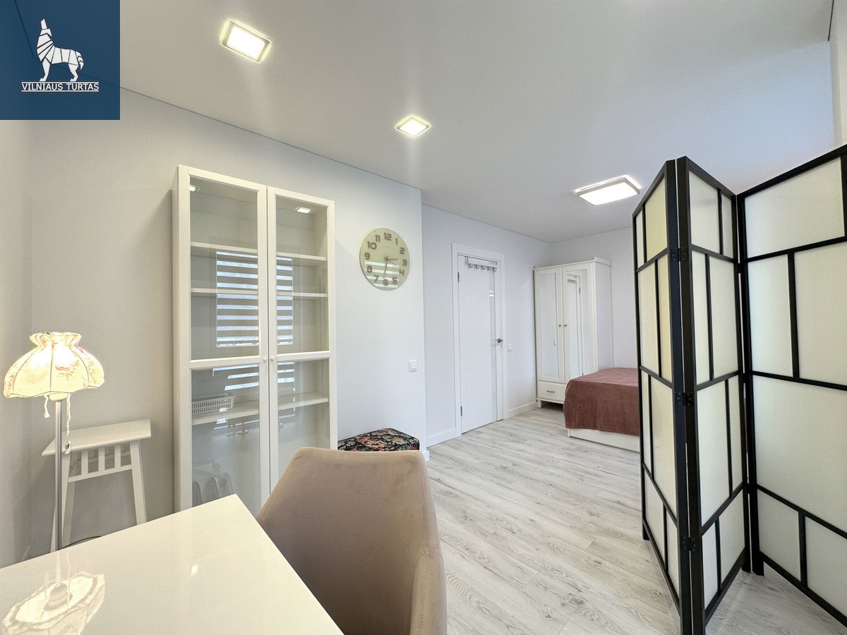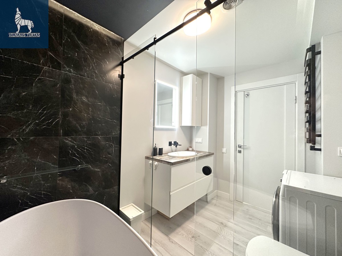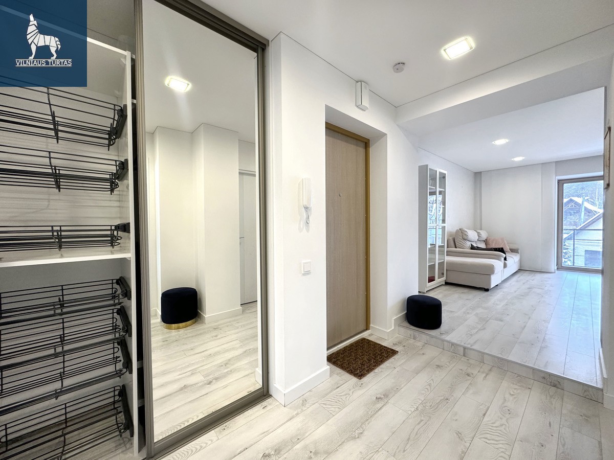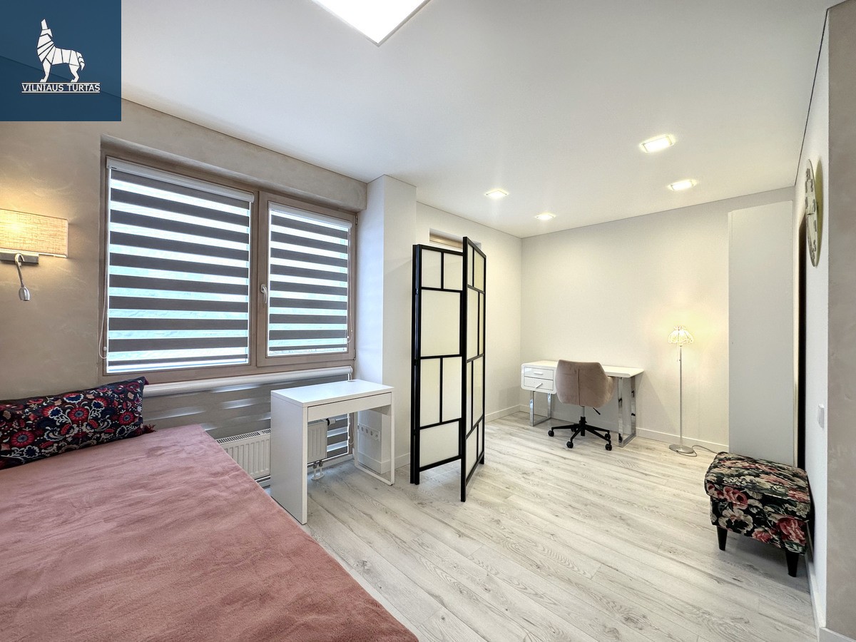 5 aukštas iš 7, bendras plota 69 kv.m., statyba 2021 m., mūrinis namas, didelis balkonas-lodžija, vonia ir tualetas kartu, du izoliuoti kambariai, svetainė kartu su virtuvė, bute didelės ir gerai apgalvotos spintos, daug apšvietimo, geros lovos su patogiais čiužiniais.