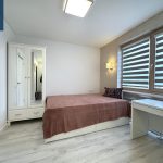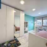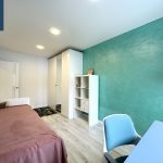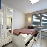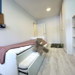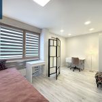 Miegamasis: lova (200×90), iš jos išsitraukia dar viena lova, sieninė spinta, rašomasis stalas.