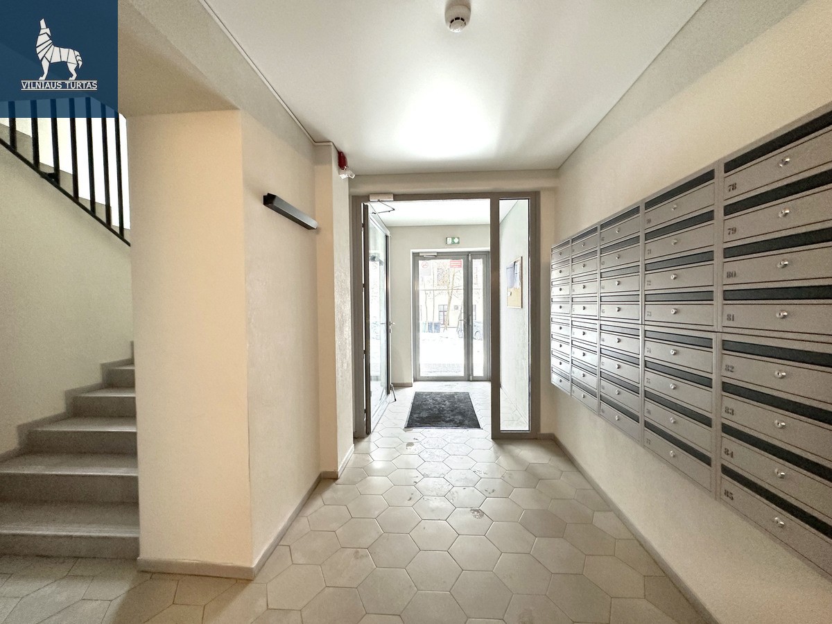 Šiuolaikiška šviesi laiptinė, langai plastikiniai, yra liftas.