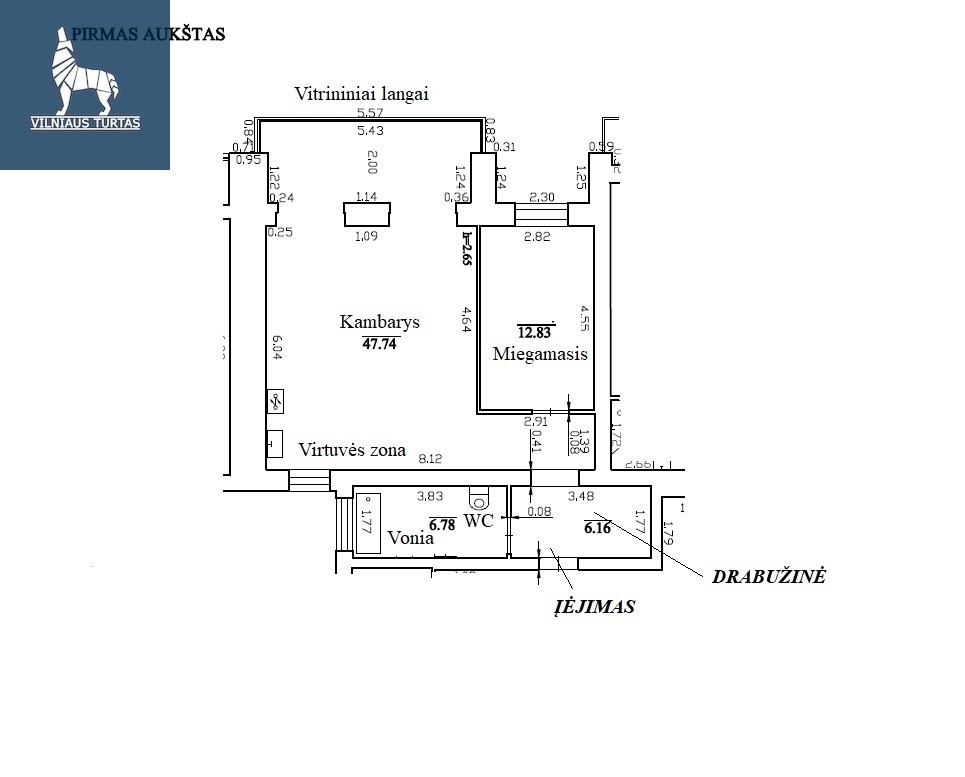 • Svetainė ir virtuvė – 47,47 kv.m