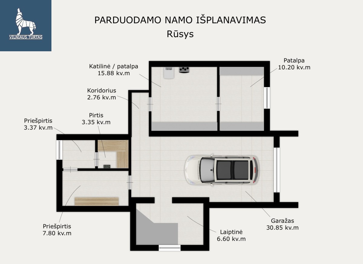 ✓ Veikianti pirtis rūsyje ir erdvus garažas.
