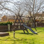 5 arų sklypas suteikia pakankamai erdvės poilsiui, vaikų žaidimams ar jaukiems vakarams terasoje.
