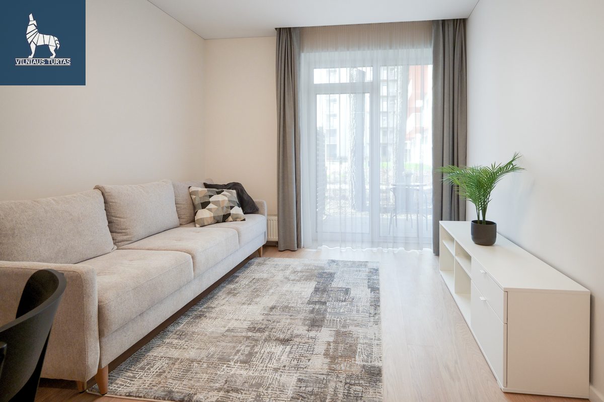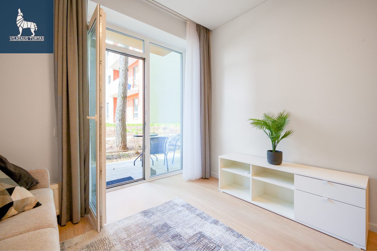 BE AGENTŪROS MOKESČIO nuomojamas šviesus ir jaukus 2 kambarių butas su terasa projekte „Jomanto parkas” Vilniuje!