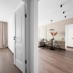 ■ Svetainės, koridoriaus ir miegamojo zonoje dažytos sienos, vonioje – plytelės;