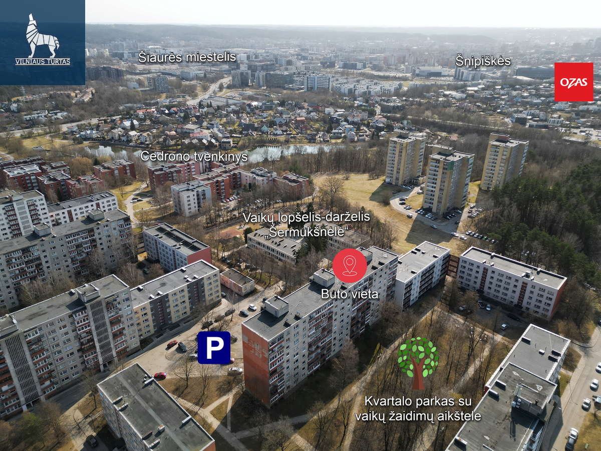 Vieta strategiškai patogi tiems, kas nori gyventi žalumos apsuptyje, nenutolstant nuo miesto teikiamų patogumų – šalimais ugdymo įstaigos, prekybos bei pramogų/laisvalaikio centrai, viešojo transporto stotelės, puikus susisiekimas su Vilniaus miesto centru – šalia Geležinio Vilko gatvė, užtikrinanti greitą pagrindinių Vilniaus miesto lokacijų pasiekiamumą tiek automobiliu, tiek ir viešuoju transportu.