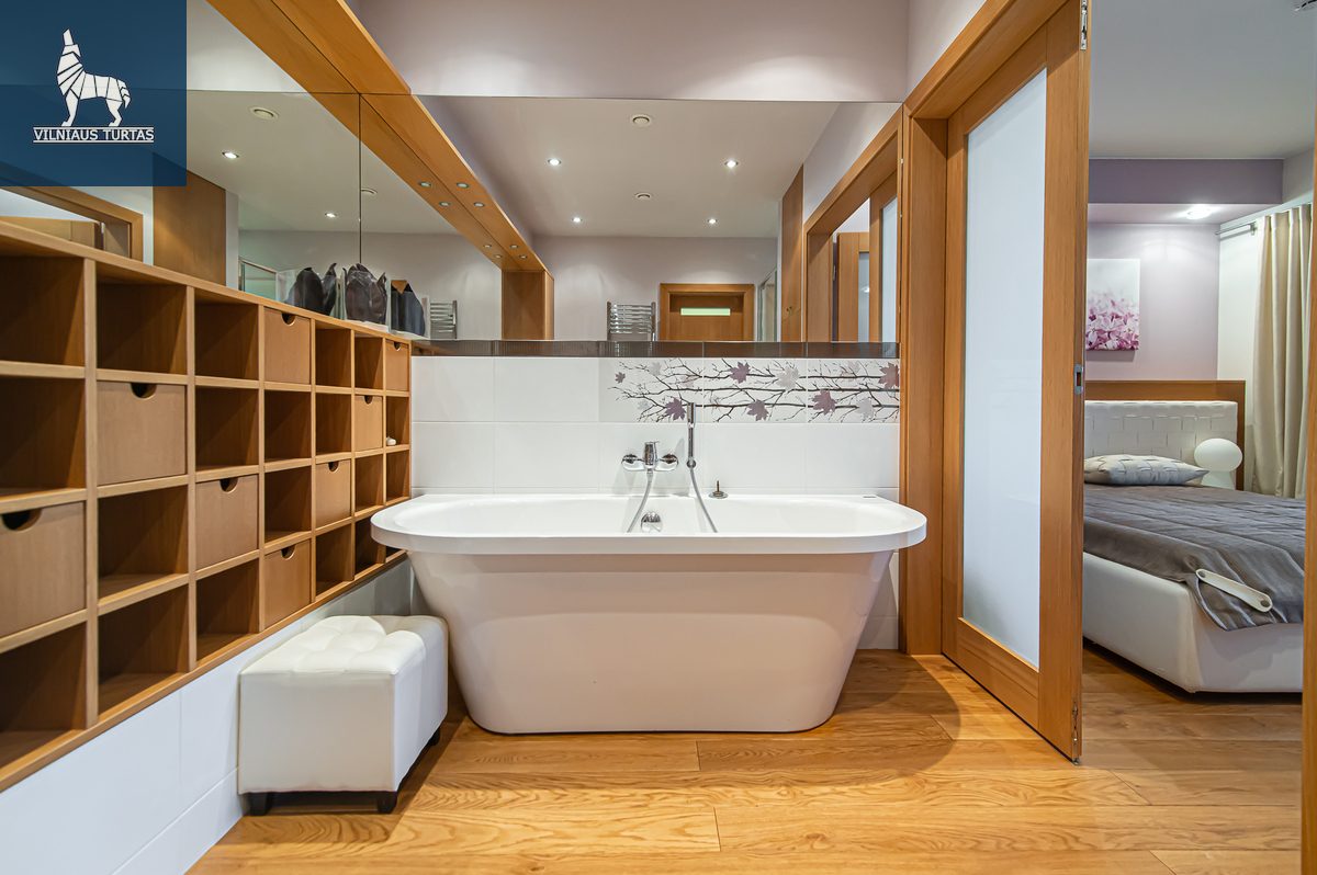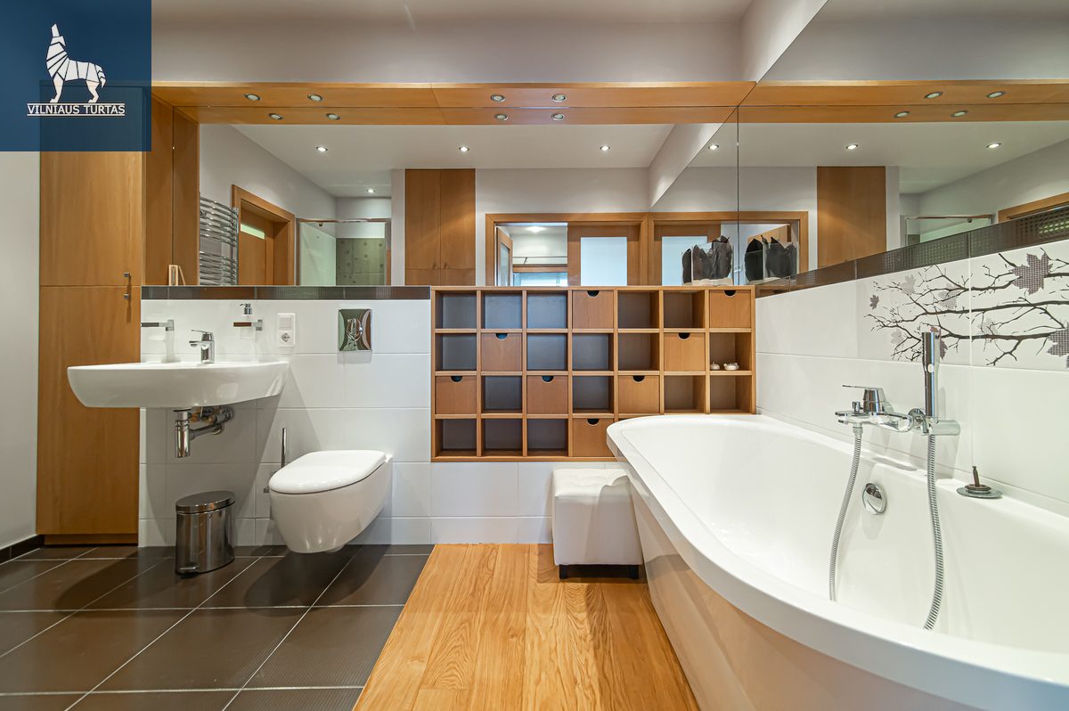 • Grindys: natūralaus medžio, plytelės. Vonios zonoje grindinis šildymas;