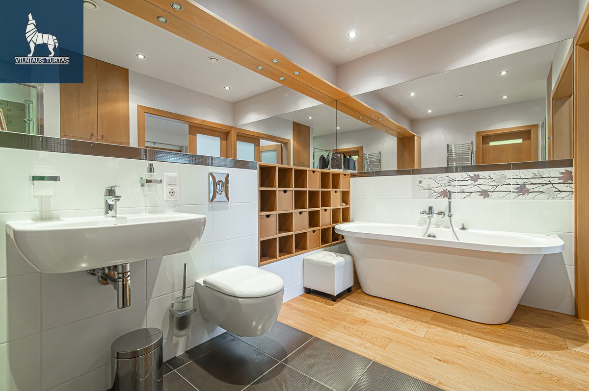– Kokybiška santechnika, grindinis šildymas vonios patalpoje, rekuperacija, kondicionierius;