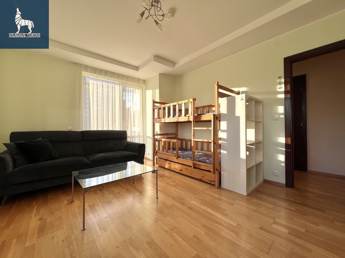 Nuomojamas šviesus ir erdvus 2 kambarių butas su požeminiu parkingu Baltupiuose, Vilniuje.