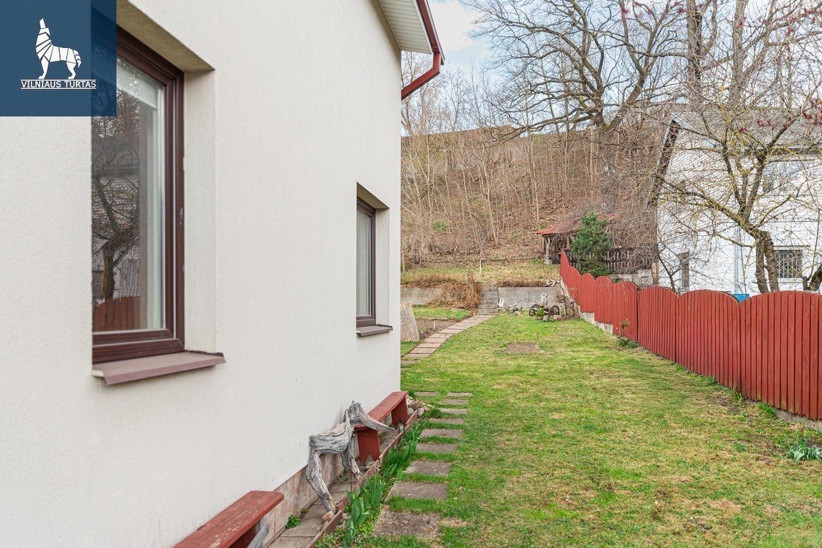 Sklypas tvarkingas, apsuptas žalumos, su automatiniais vartais, suteikiančiais saugumo ir patogumo. Kaimynystė rami, be intensyvaus eismo, o šalia esantis miškas kviečia pasivaikščiojimams, rytinei kavai lauke ar ramiems vakarams kieme.