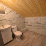 I aukšte įrengta virtuvė su svetainė+kambarys, dušas, wc, katilinė ir koridorius