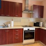 Virtuvės komplektas su visa reikalinga buitine technika: šaldytuvas, mikrobangų krosnelė, viryklė;
