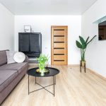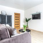 – Svetainėje: sofa su miegamu mechanizmu, televizorius, lentynos, indauja.