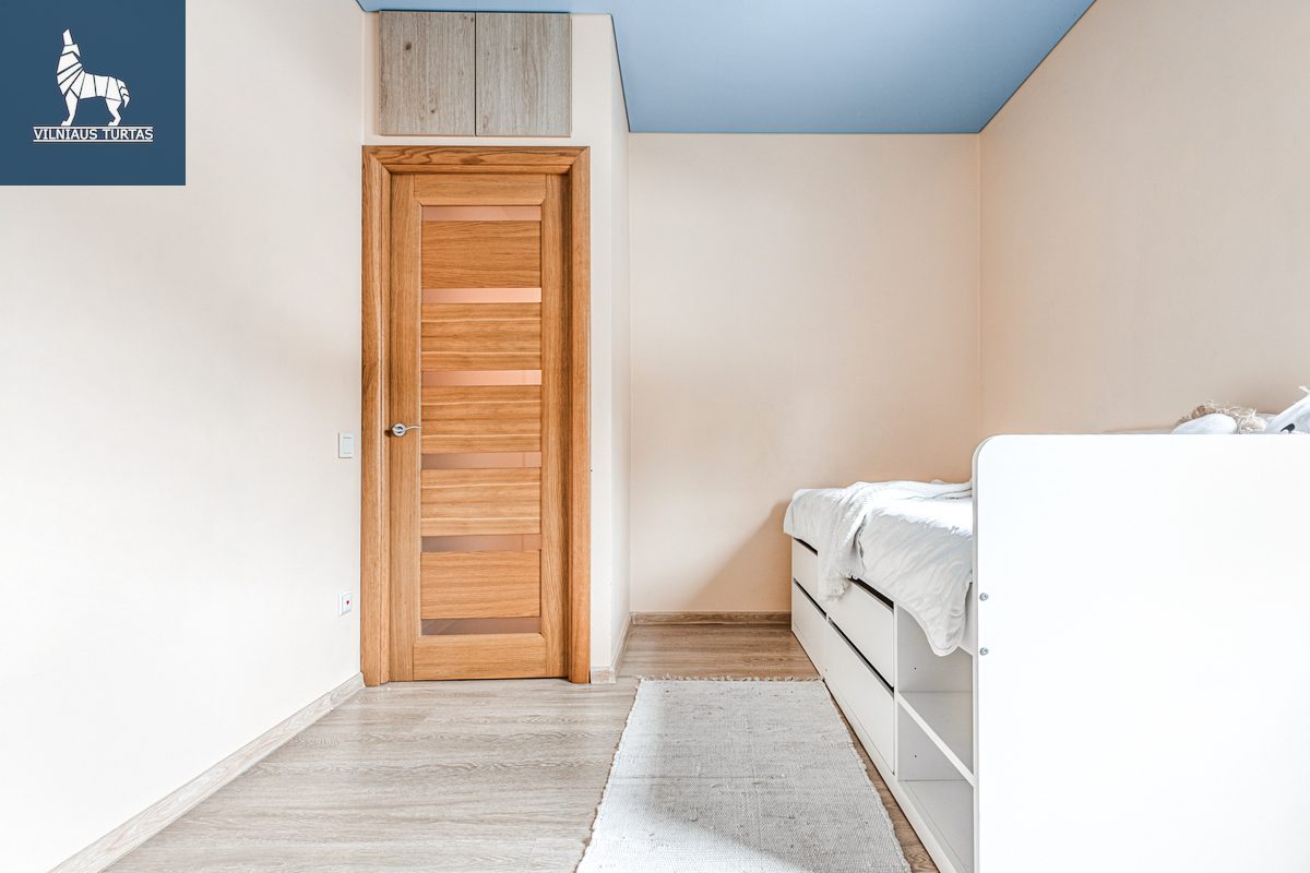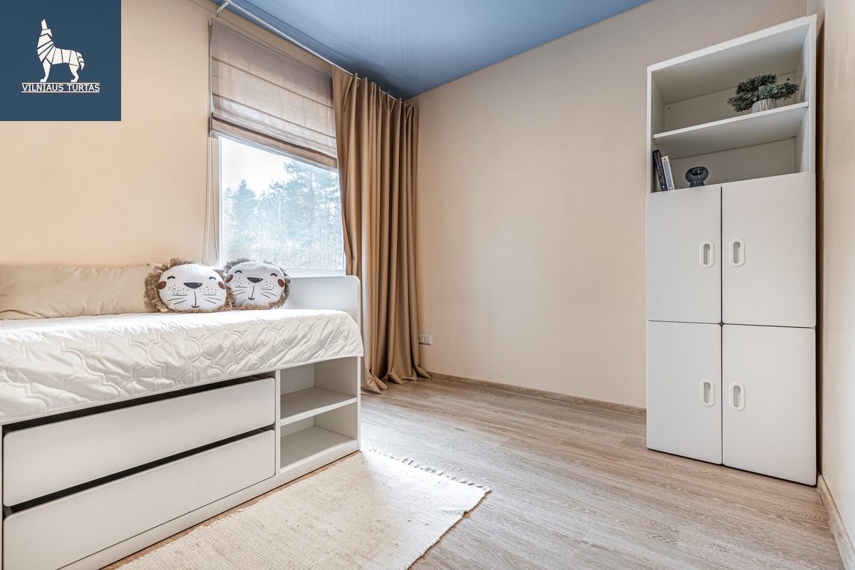 – Vaikų kambaryje: lova 90x200cm su erdviais stalčiais, spinta su lentynomis, spintelė.