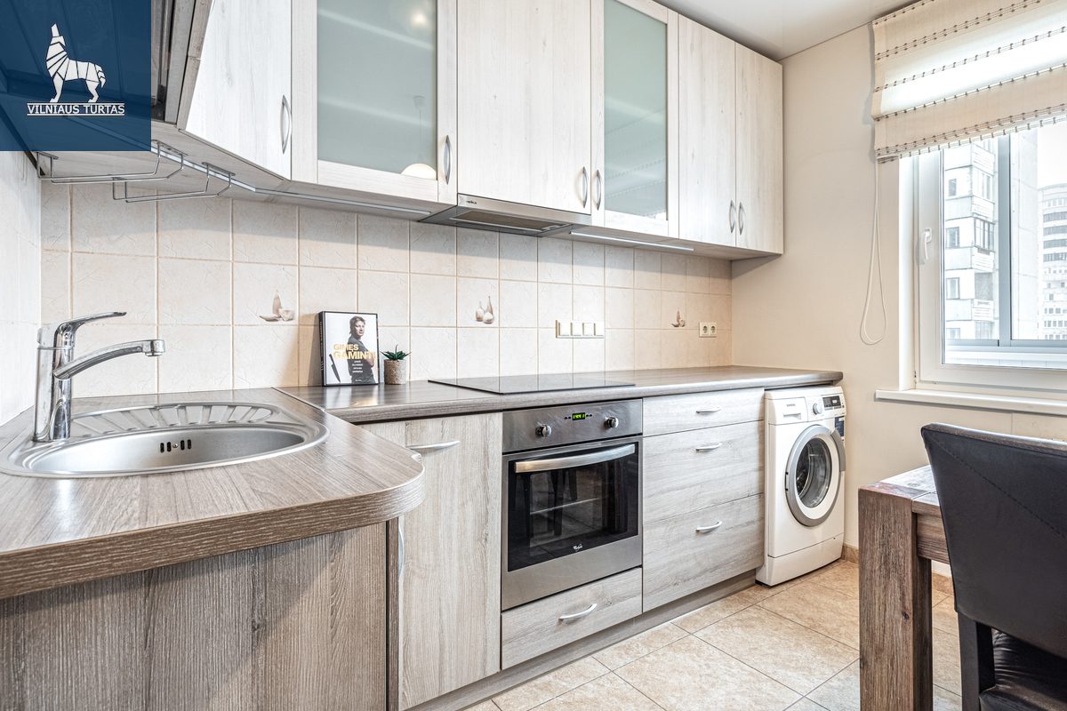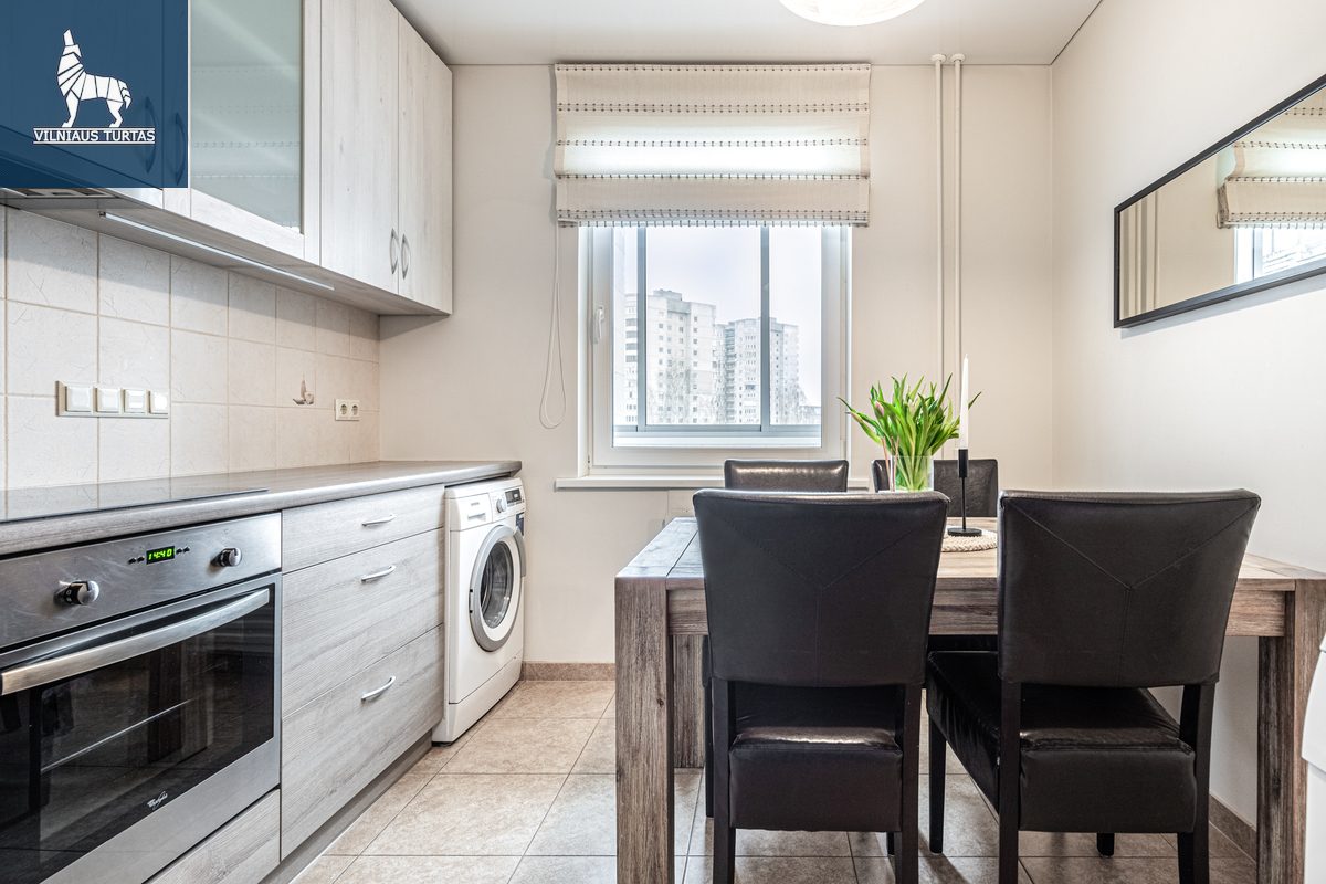 – Integruota virtuvė su buitine technika: orkaitė, kaitlentė, šaldytuvas, indaplovė, yra valgomojo stalas su 4 kėdėmis, skalbimo mašina ir džiovyklė.