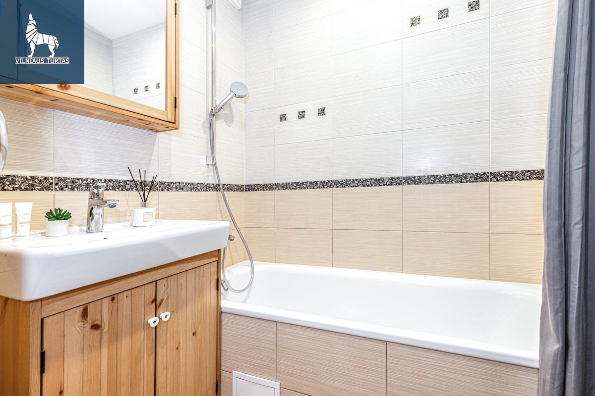 – Vonioje: erdvi vonia, kriauklė, spintelė.