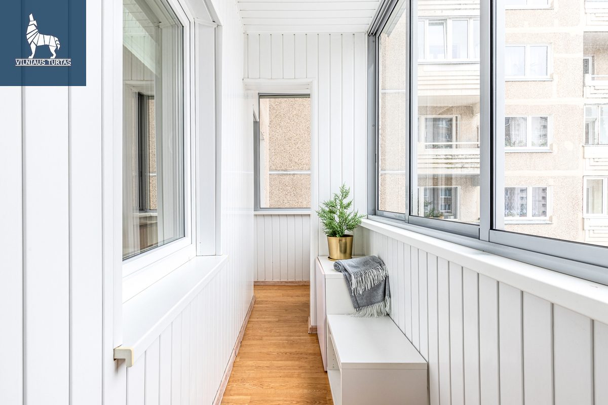 – Didelis dvigubas balkonas (įėjimai iš dviejų kambarių).