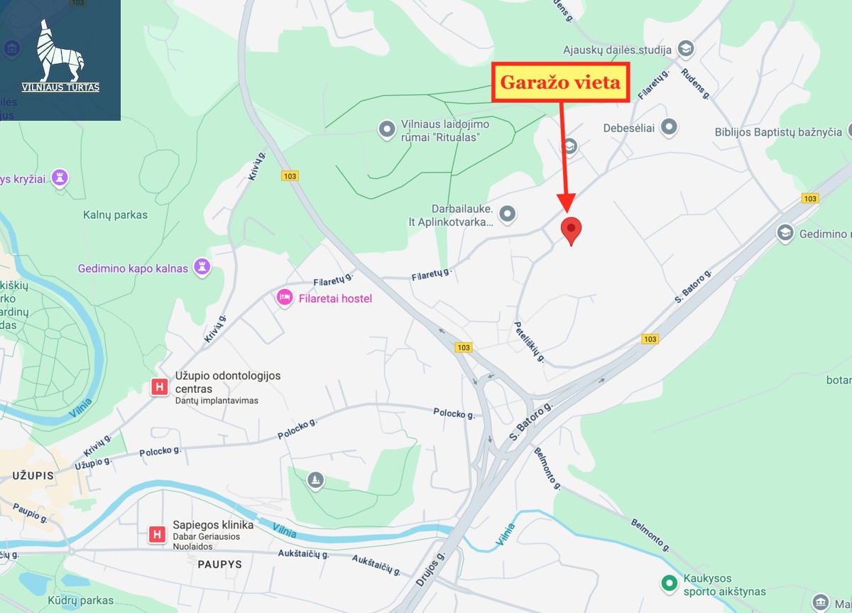 Parduodamas 16,19 kv. m mūrinis garažas Peteliškių g. 44, Filaretuose, netoli Užupio – strategiškai patogioje vietoje.