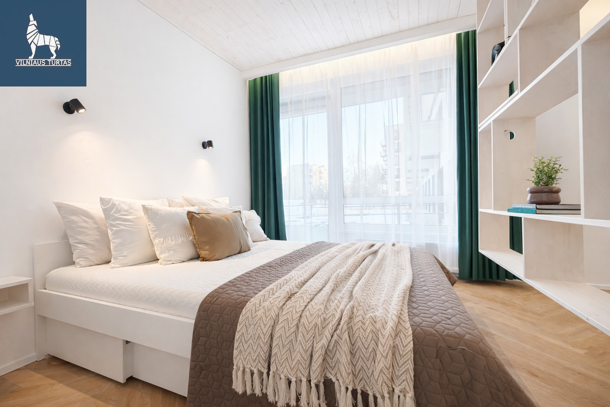 Nuomojamas butas naujos statybos A++ energetinės klasės name. Kvartale įrengtos žaliosios zonos, pasivaikščiojimo ir dviračių takai, vaikų žaidimų aikštelės, netoliese – Buivydiškių tvenkiniai. Vos keli žingsniai iki prekybos centrų, mokyklų, darželių ir viešojo transporto stotelių, o miesto centrą automobiliu pasieksite per 10–15 minučių.