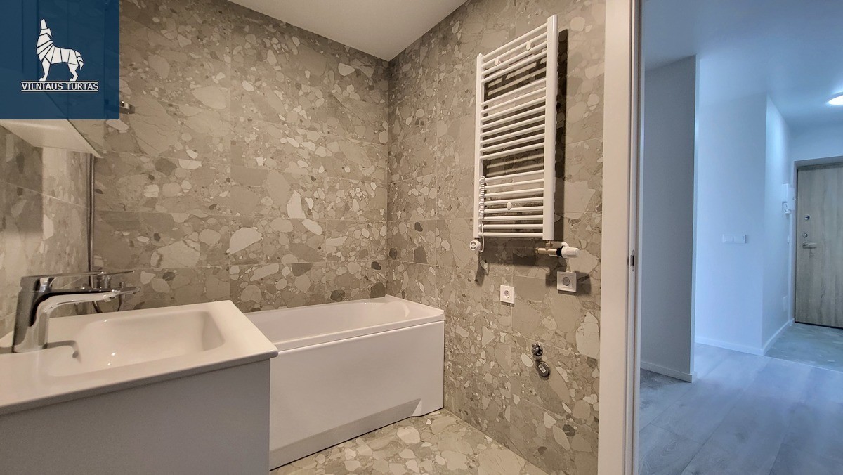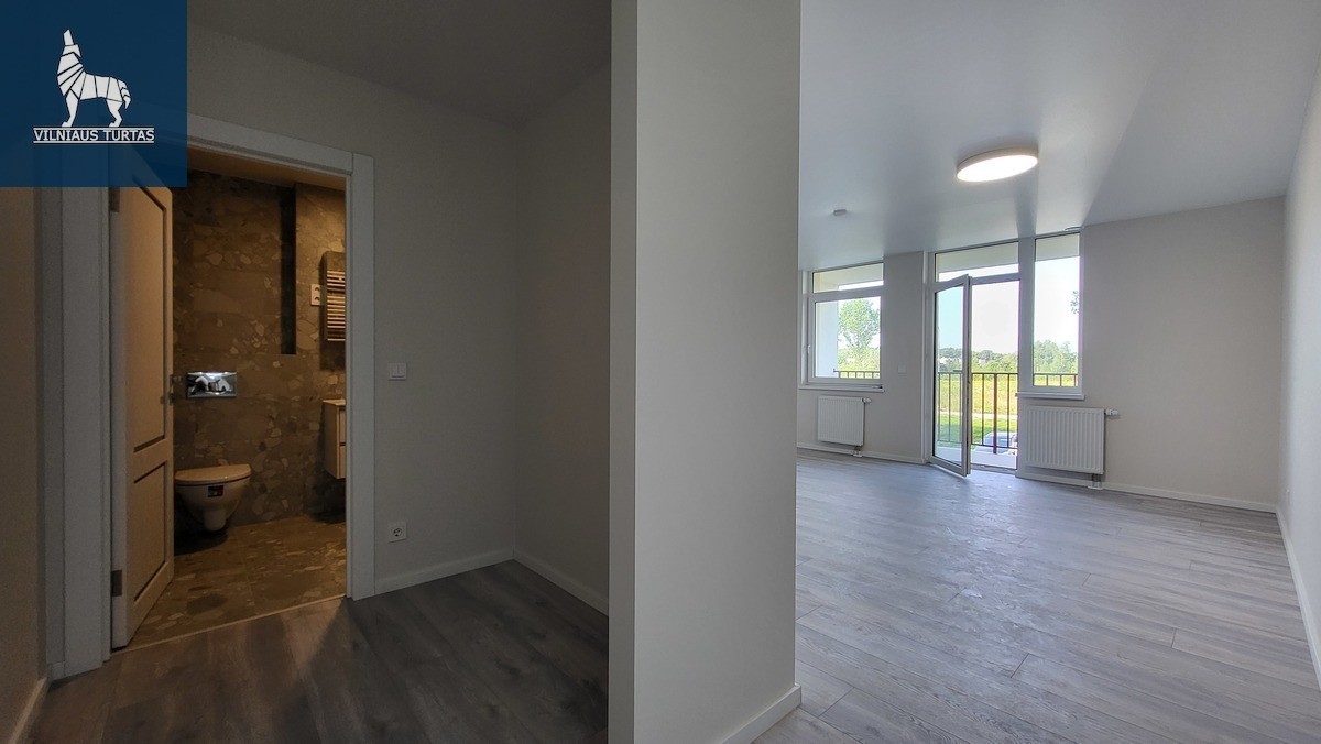 Ramioje ir patogioje Justiniškių mikrorajono vietoje parduodamas 1 kambario, 33,70 kv.m. butą su 6,53 kv.m. ypač dideliu balkonu per visą buto ilgį (viso 40,23 kv.m.), 2a/8, naujos statybos name.