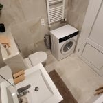 Vonios kambarys itin erdvus, todėl telpa ir skalbimo mašina. Drabužinė, kabykla.