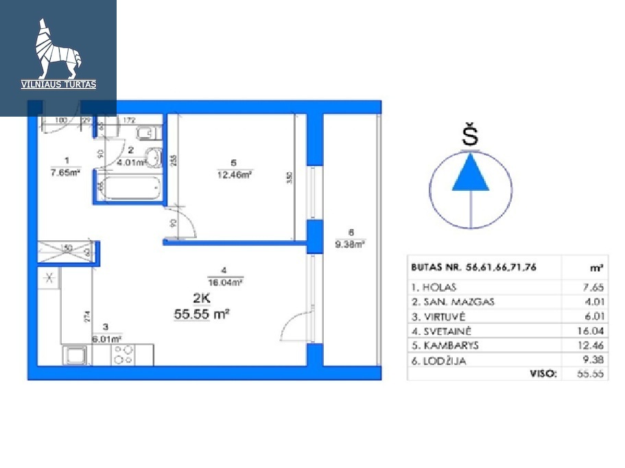Parduodamas butas Rygos g. 54, Justiniškėse, Vilniuje, 55.55 kv.m ploto, 2 kambariai