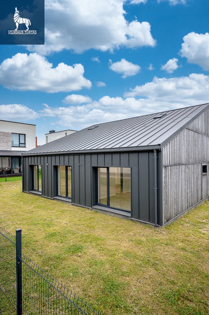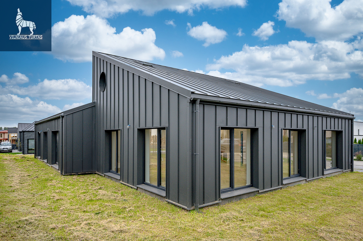 Parduodamas vieno aukšto namas su antresole Lukšinės g. 25, Kalnėnuose – rajone, vertinamame už švarą, darną ir išpuoselėtą aplinką. Tai 113,1 kv. m ploto A+ energinės klasės būstas, pastatytas 2025 metais. Karkasinės konstrukcijos namas jungia ekologiškumą ir skandinaviško stiliaus estetiką – fasade dera medžio dailylentės ir skardos apdaila, kuri pastatui suteikia modernų, bet jaukų charakterį.