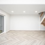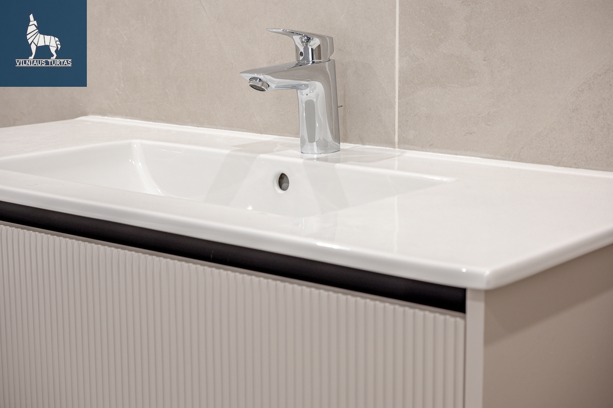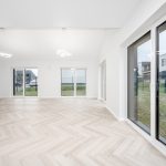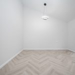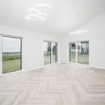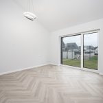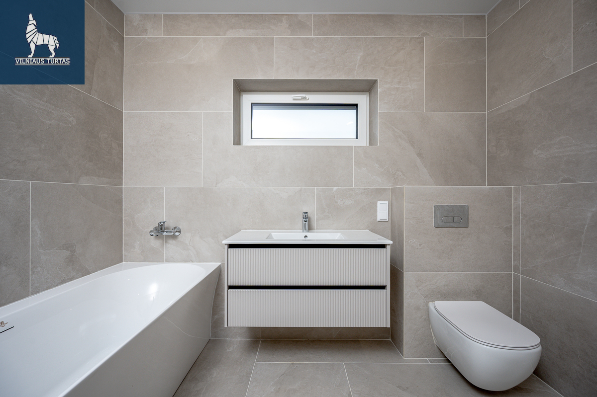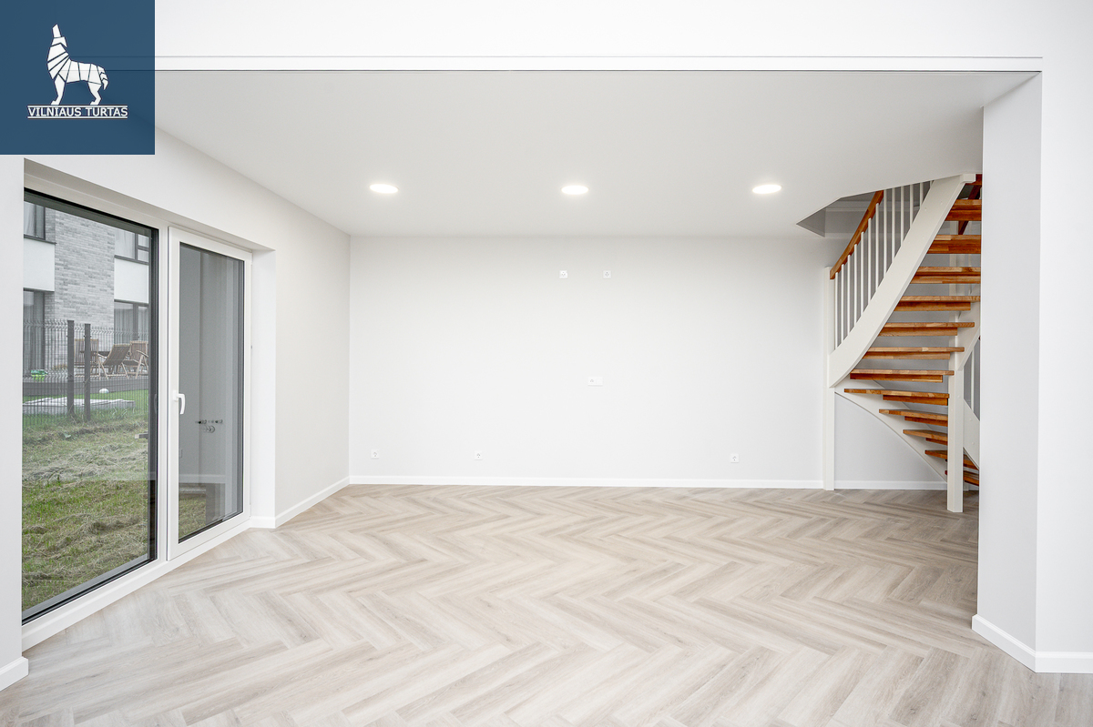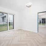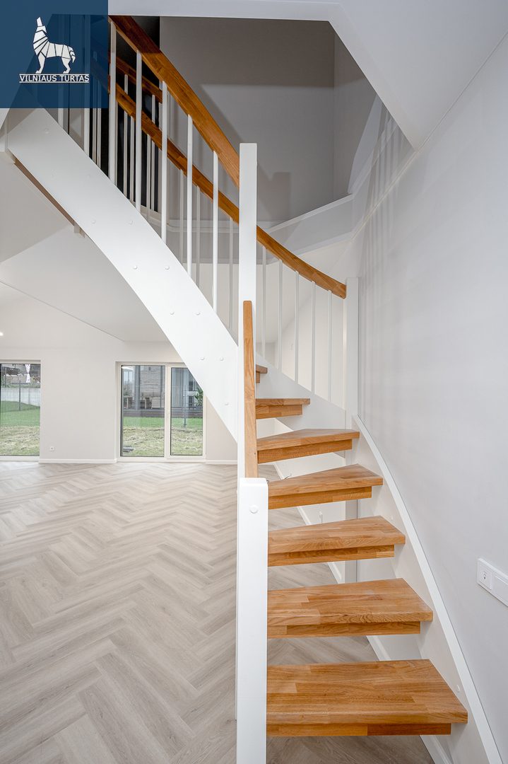 Vidaus apdailoje vyrauja neutralūs tonai ir praktiškos medžiagos – dažytos sienos, vinilo grindys, vonios kambaryje plytelės. Šildymas – numatytas aeroterminis (oras–vanduo) su grindiniu šildymu visame name.