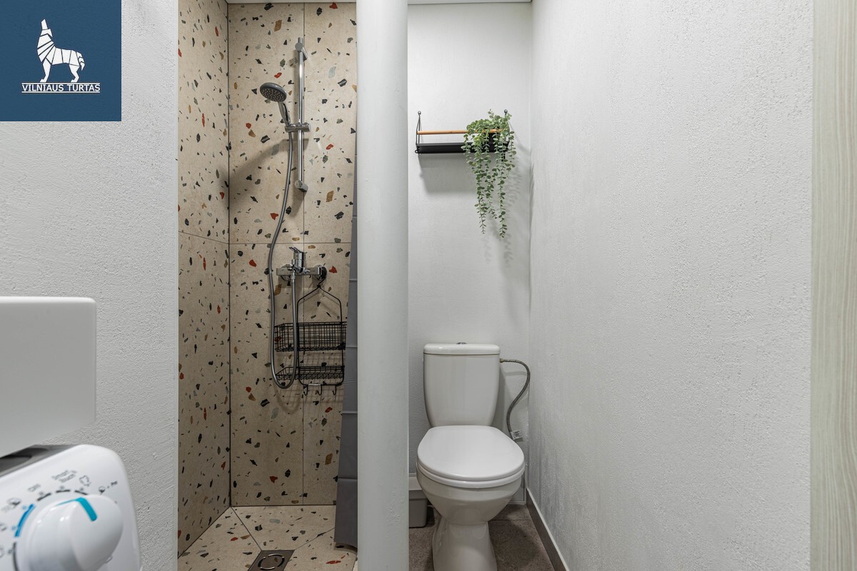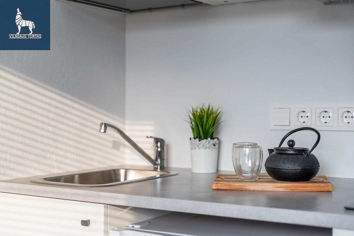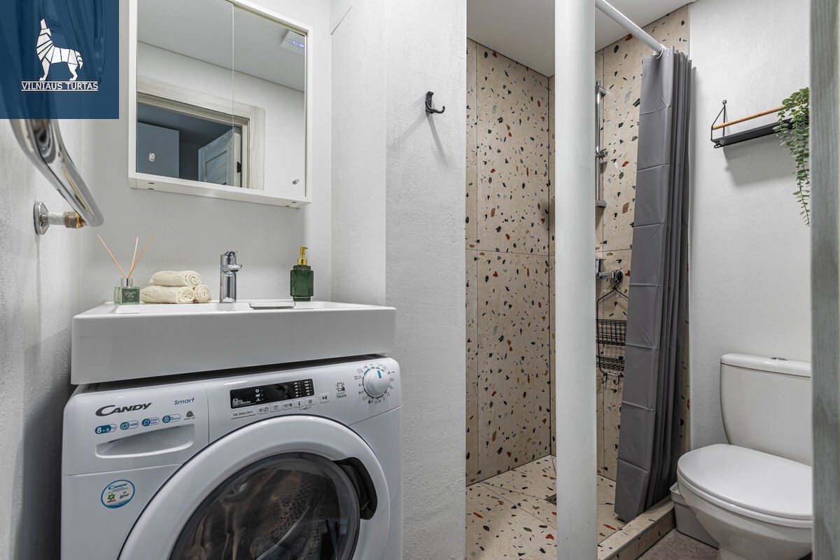 Butas aprūpintas puikiai veikiančia, nauja buitine technika bei visais reikalingais baldais Jūsų patogumui. Patogiai įrengta virtuvės zona. Šviesus vonios kambarys.